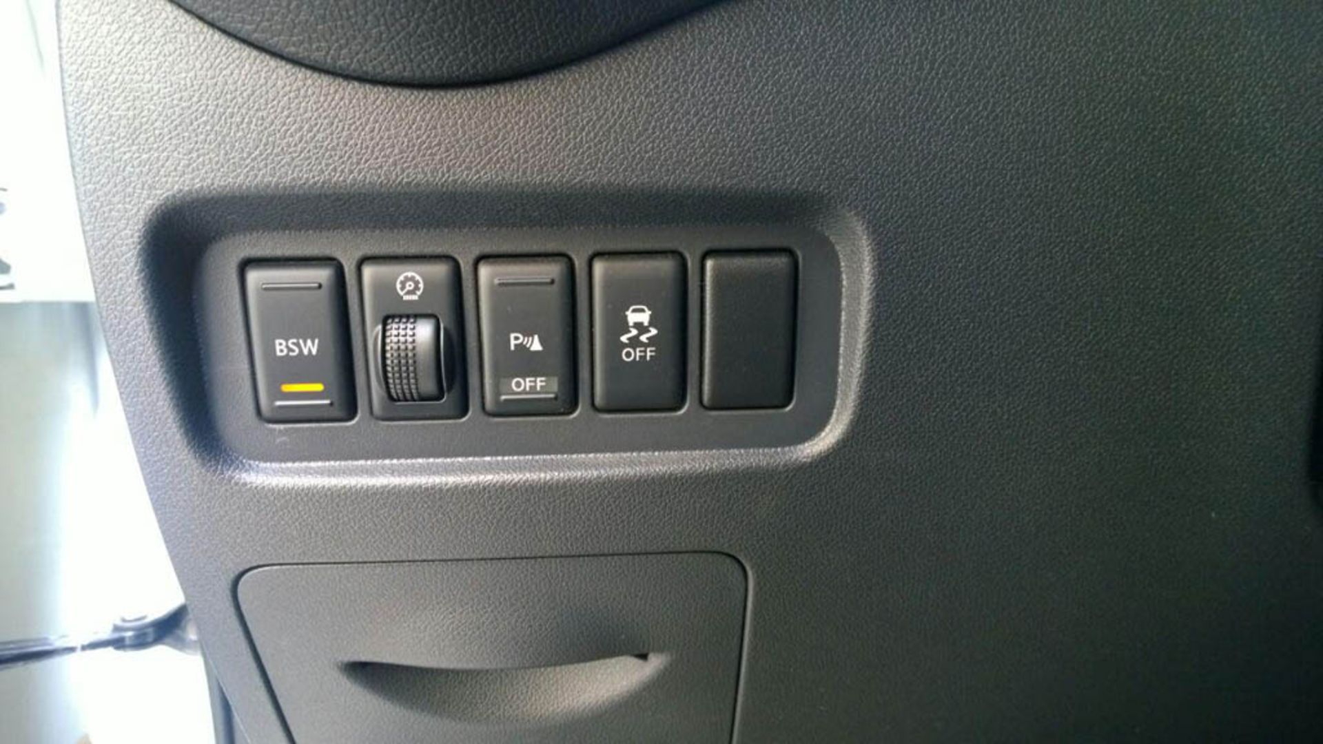 کلیدهای کروز- لیمیتر و HDC و 4WD در وسط داشبورد و کلیدهای ESP، تنظیم نور صفحه کیلومتر و قطع و وصل سنسور پارک در پایین سمت چپ فرمان دیده میشوند.