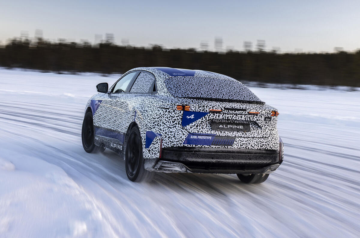 آلپین A390 هماکنون تستهای دشوار خود در دمای زیر صفر درجه سانتیگراد را پشت سر میگذارد تا مدیران و مهندسان شرکت از عملکرد مطلوب خودرو در دمای منفی 40 درجه اطمینان حاصل کنند. مسیرهای لغزنده و یخ زده نیز فرصت مناسبی برای بررسی عملکرد سیستمهای هدایت گشتاور و کنترل پایداری است، سیستمهایی که جزو عناصر کلیدی ارائه کاراکتری شبیه خودروی اسپرت A110 خواهند بود. مدل نهایی A390 همچنین از پلتفرم آمپر مدیوم برقی گروه رنو استفاده خواهد کرد. این پلتفرم برگرفته از معماری مگان E-Tech بوده و آلپین با استفاده از آن به جنگ خودروهایی همچون بی ام و iX2 و تسلا مدل Y خواهد رفت. قرار است یک موتور برقی در اکسل جلو و دو موتور هم در اکسل عقب جا خوش کنند. آلپین برای تولید محصول جدید خود پورشه ماکان را به عنوان سنگ محک در نظر گرفته و ادعا میکند سه موتور برقی و سیستم هدایت گشتاوری باعث ارائه دینامیک سواری مشابه یک خودروی سبکوزن خواهند شد. فیلیپ کریف مدیرعامل آلپین همچنین اظهار داشته همین نوع طراحی در A110 برقی جدید نیز بکار خواهد رفت. آنتونی ویلین طراح ارشد آلپین نیز اظهار میدارد: