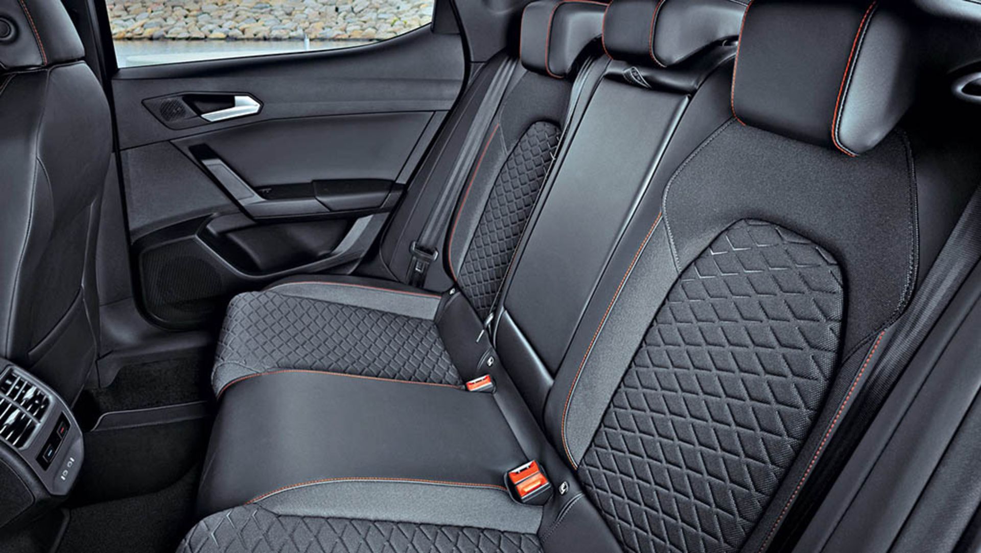 البته یکی از نقاط قوت اصلی لئون در برابر خودرویی همچون گلف فضای کابین و بارش است. ظرفیت بار خودرو بدون تغییر برابر با 380 لیتر بوده اما طول کلی خودرو 86 میلیمتر بیشتر شده و فاصله بین محوری نیز 50 میلیمتر افزایش یافته است. همهی این موارد به معنی فضای بهتر برای سرنشینان بخش عقب میباشد. افراد بزرگسال در این بخش حس راحتی خواهند داشت و دربهای عقب با پهنای بیشتر باعث میشوند ورود و خروج راحتتر باشد.