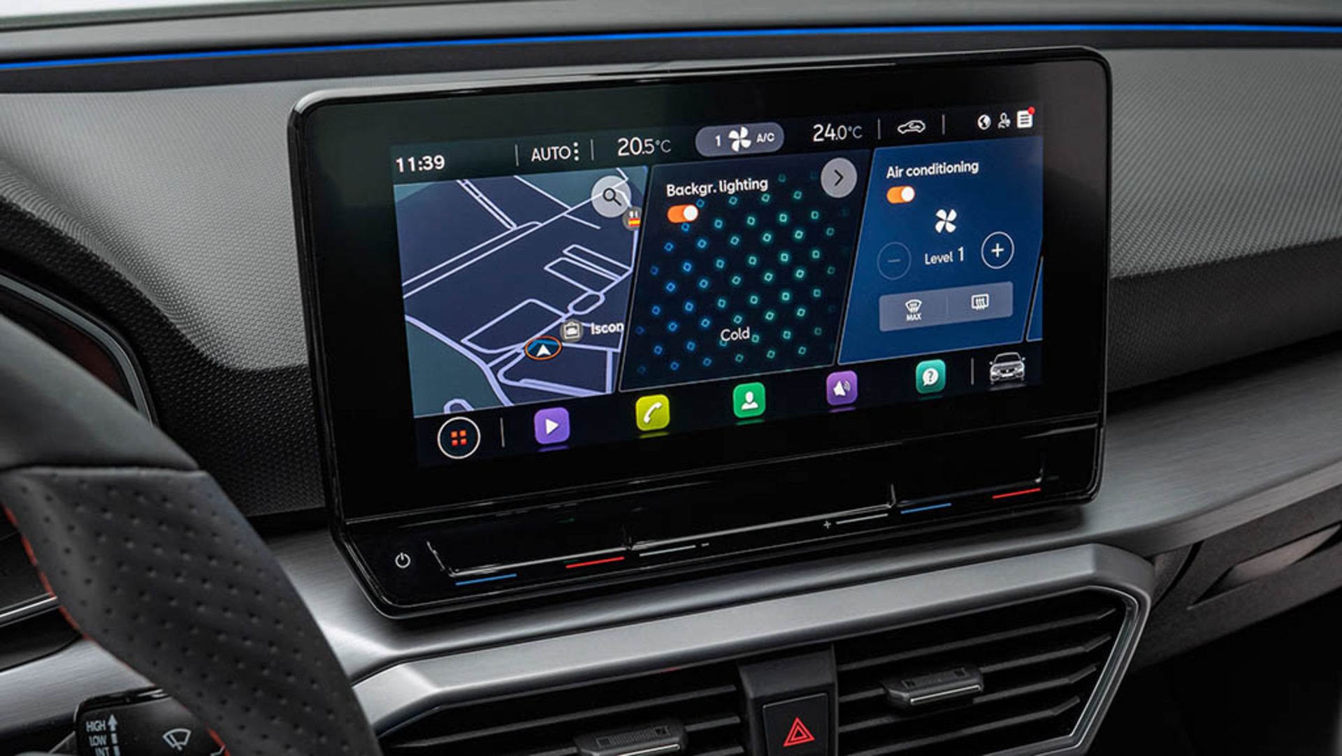 تجربه رانندگی درگیر کننده به کنار، لئون هم مانند گلف دردسرهایی دارد. سیستم تهویه مطبوع از طریق صفحه لمسی زیر صفحهنمایش اصلی کنترل میشود اما کار کردن با آن مخصوصاً در سرعتهای بالا باعث حواسپرتی میشود. همچنین در روز نیز پیدا کردن برخی ویژگیهای آن سخت است.