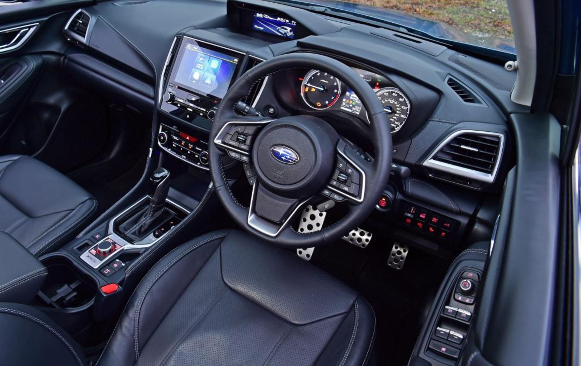 کابین فارستر همانند دیگر محصولات سوبارو اهمیت زیادی به تکنولوژی داده ولی تا حدی عجیب است چراکه فرمانی با دکمه‌های زیاد، پشت آمپرها و صفحه‌نمایش 8 اینچی دیده می‌شود.