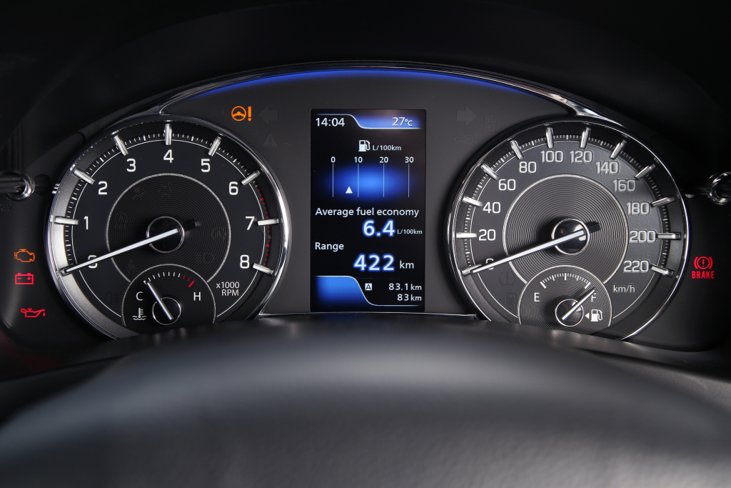 مطابق انتظار از یک خودروی اقتصادی، مواد پلاستیک خشک در سراسر داشبورد و تودری دیده میشوند. از سوی دیگر، نمایشگر لمسی 7 اینچ، استارت دکمهای و تهویه مطبوع اتوماتیک، امکانات جالب در سوزوکی سیاز هستند.