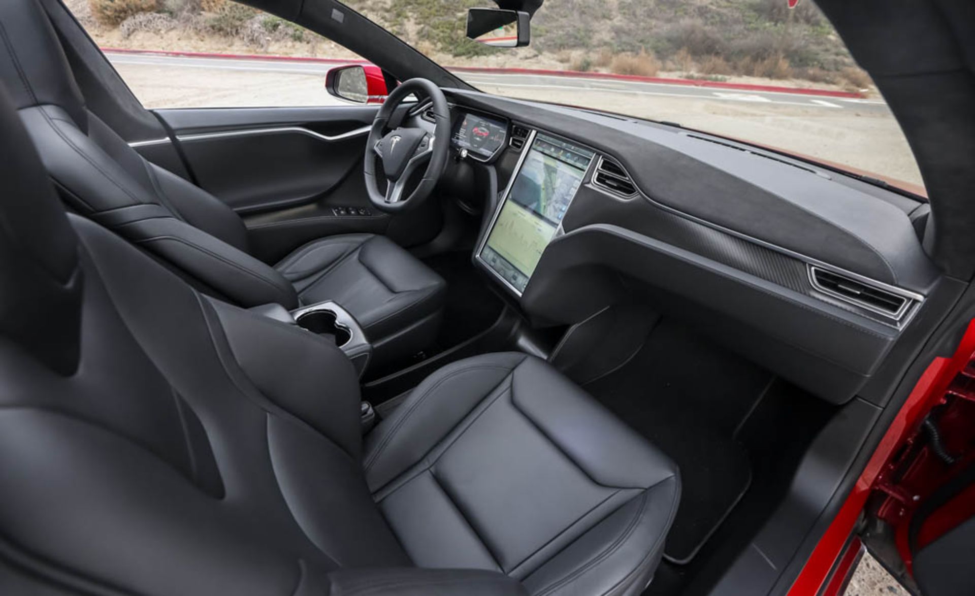 در همین حال، کابین مدل S از شرایط لوکس فاصله دارد و میتوان گفت که طراحی سادهای دارد. در همین حال، در کنار صفحه نمایش بزرگ در وسط پنل ابزارهای و نمایشگر زیبای عقربهها، تسلا در P85D از طرحهای چرم آلکانترا بر روی داشبورد و سقف استفاده کرده است. صندلیهای جدید، ظاهر بهتری پیدا کردهاند و تکیهگاه و راحتی بهتری ایجاد میکنند. در عین حال، مجموعهای کامل از تکنولوژیهای ایمنی شامل هشادر برخورد، دستایر عبور از بین خطوط و کروز کنترل انطباقی قرار است که در مدل S ارائه شوند. در نتیجه، این امکانات باعث میشوند که مدل به سطح تکنولوژی راننده خودکار مرسدسبنز کلاس S برسد. ولی در حال حاضر، تسلا هنوز مشغول توسعه این سیستمها است.