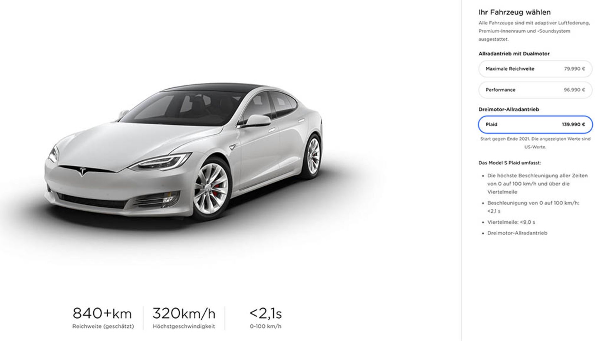 تسلا مدل S پلاد سه موتوره و چهار چرخ محرک برد باورنکردنی 837 کیلومتری، حداکثر سرعت 322 کیلومتر در ساعتی و رکورد طی مسافت 400 متر زیر 9 ثانیهای خواهد داشت. شتاب صفر تا 96 کیلومتر در ساعت این هیولا نیز زیر 2 ثانیه ثبت میشود.