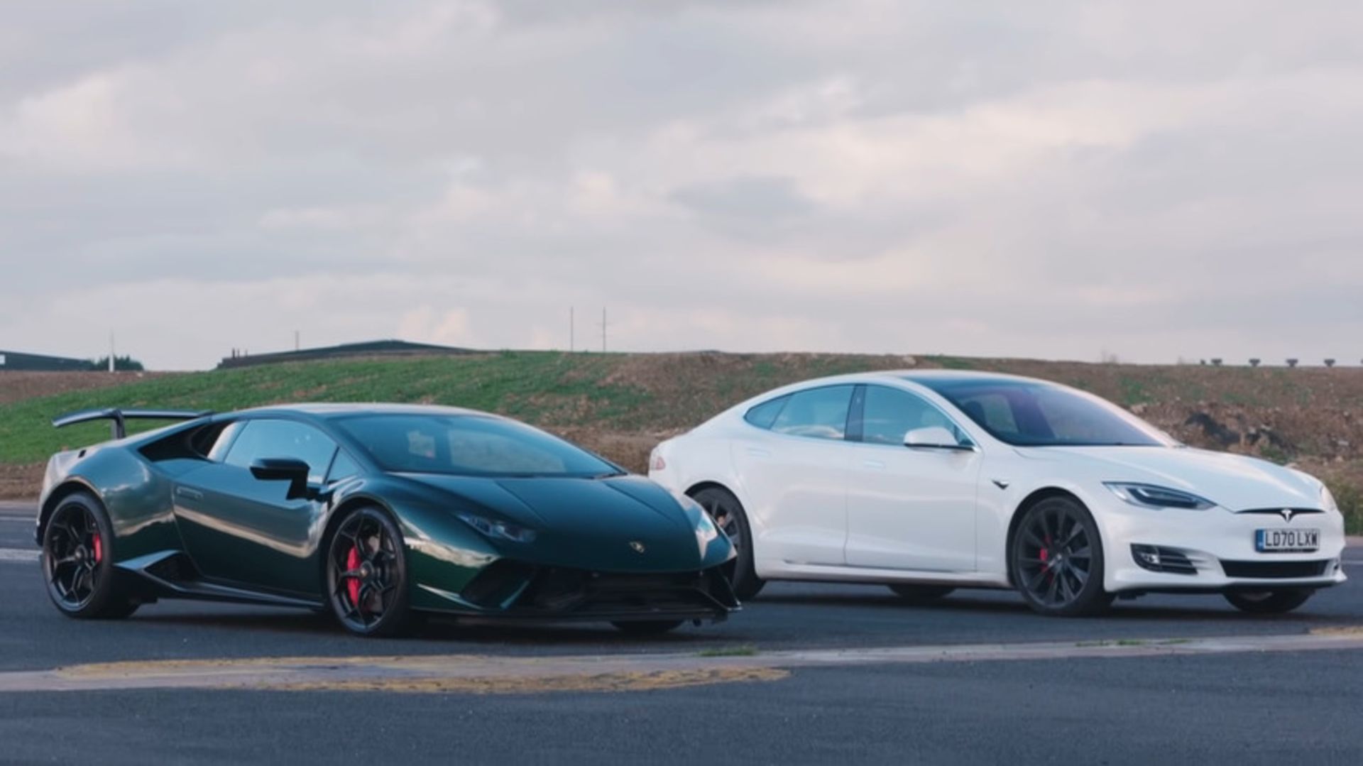 درگ دو دنیای متفاوت! لامبورگینی اوراکان پرفورمنته در برابر تسلا مدل S