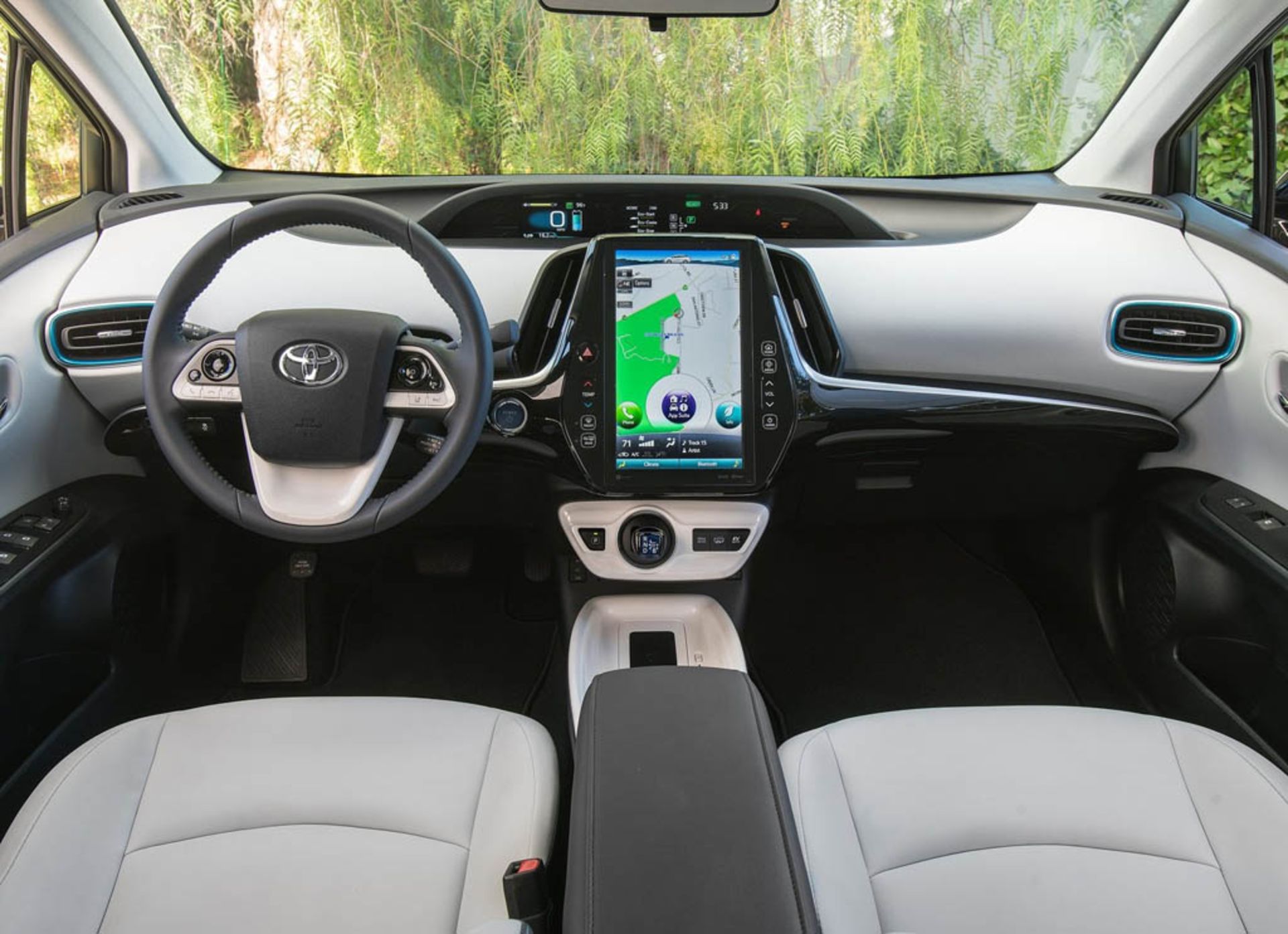 یکی از وجوه تمایز داخلی پریوس پلاگ-این هایبرید با نمونه لیفتبک (در دو گونه پریمیوم و اَدوَنسد) نمایشگر 11.6 اینچی HD است که بسیاری از عملکردهای خودرو را درون آن گنجاندهاند. طبق ادعای تویوتا، راحتی و آسایش اتاق از اولویتهای جدی بوده و با بهرهگیری از مواردی چون طراحی بهروز، مواد باکیفیت، دستیابی به بزرگترین فضای بار (در کلاس خود) با تا کردن صندلیهای ردیف دوم، تعبیه فناوریهای نو، صندلیهای جلو با نگه دارندگی بسیار خوب بدن و گرمکن، هدآپ دیسپلی رنگی، نمایشگر 4.2 اینچی موسوم به MID در بالاترین قسمت کنسول جلو و تعبیه کنترلهای موردنیاز روی غربیلک فرمان تلاش شده تا محیطی لذتبخش و بهدوراز نارضایتی برای مشتریان فراهم گردد.