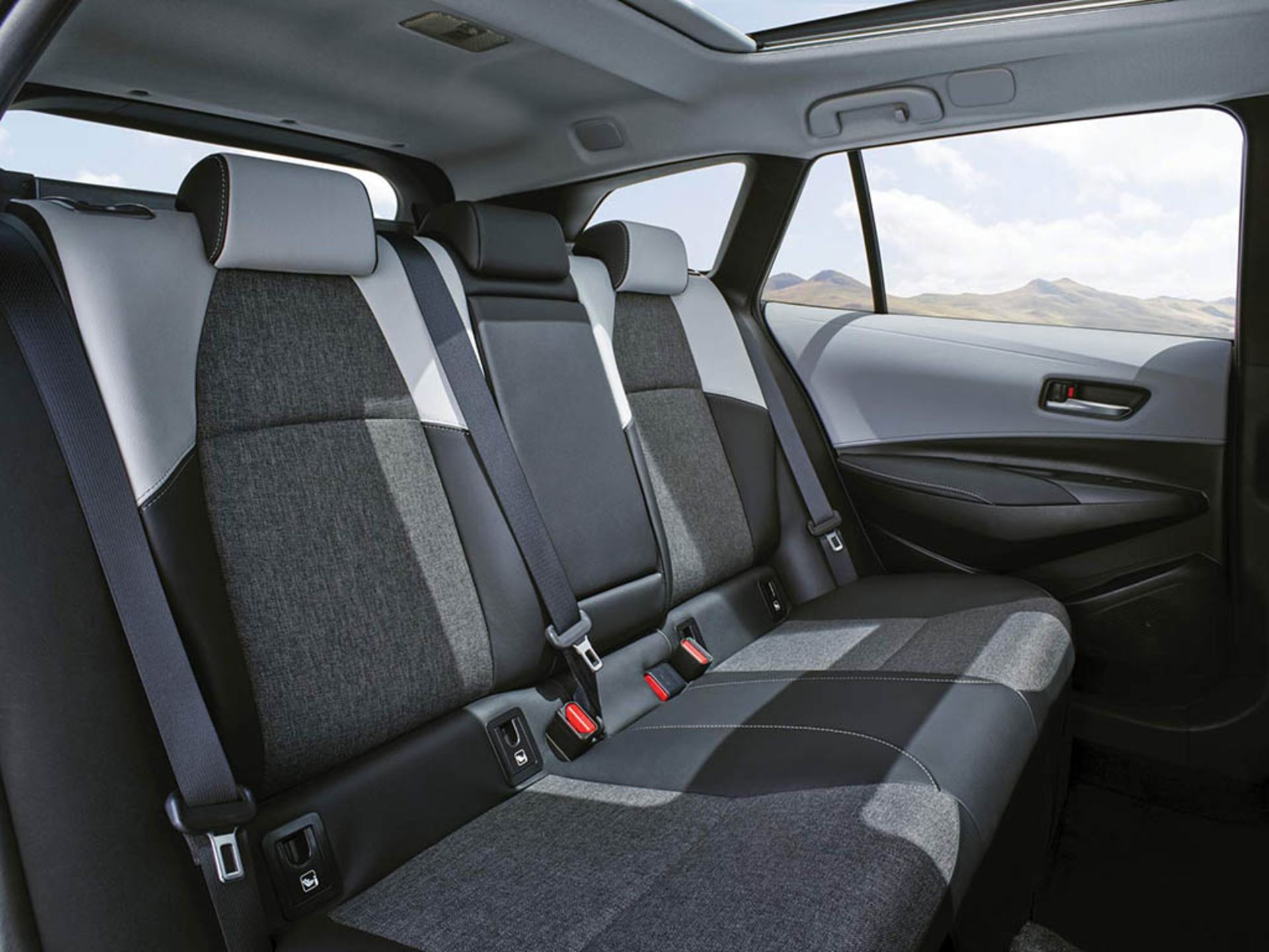 کرولا تورینگ اسپورت در مقایسه با نسل پیشین 58 میلی‌متر طویل‌تر است. مهم‌تر اینکه فاصله‌ی بین محوری نیز با افزایش 100 میلی‌متری به 2700 میلی‌متر رسیده که این امر باعث ایجاد بیشترین فضای پای عقب در کلاس شده است. فضای بار این خودرو نیز 598 لیتر است.