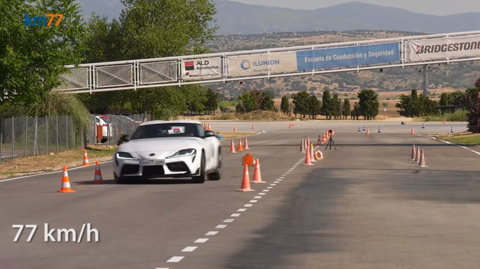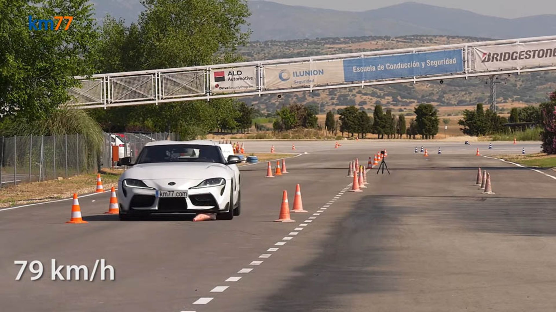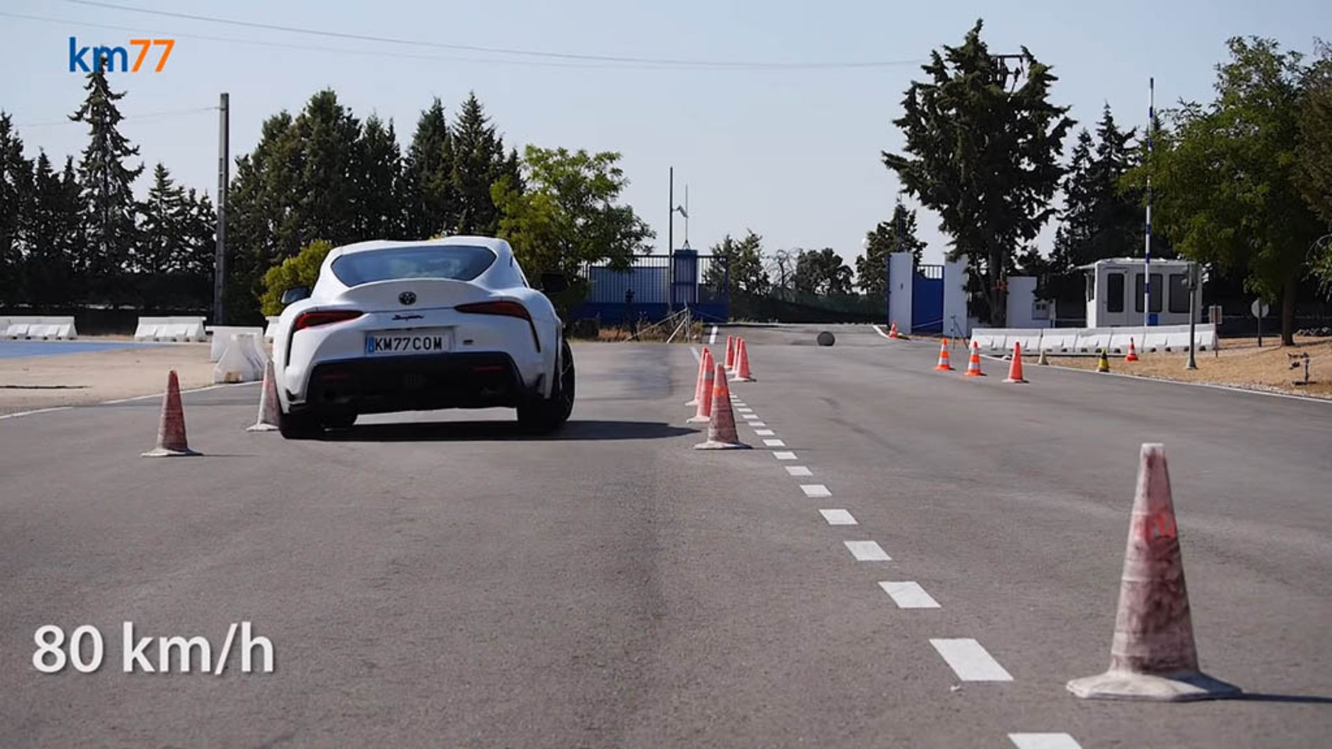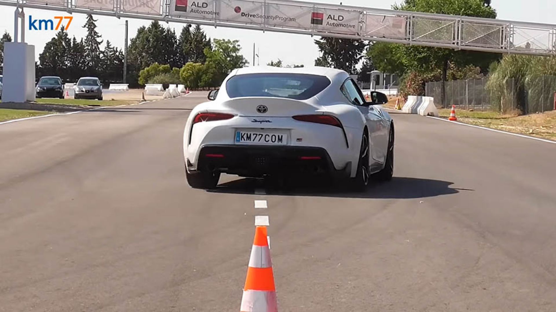 سوپرا در تست دیگر با همین سرعت ناکام میشود. این خودرو همچنین در سرعتهای بالاتر نیز نتوانسته نتایج موفقی را ثبت کند. به همان اندازه که سرعت بالاتر میرود لاستیکها لیز خورده و نهایتاً سوپرا با مخروطها برخورد میکند.