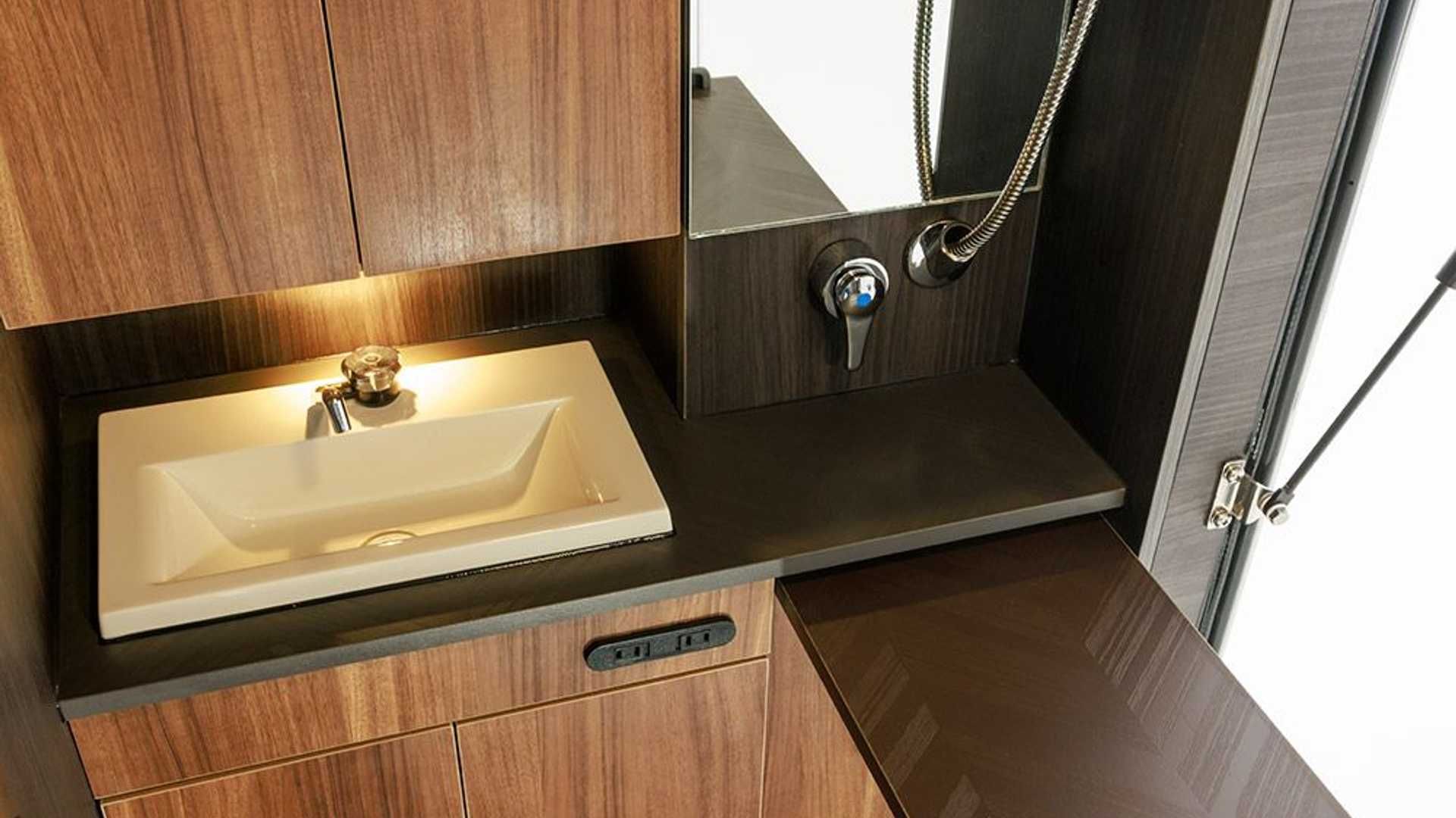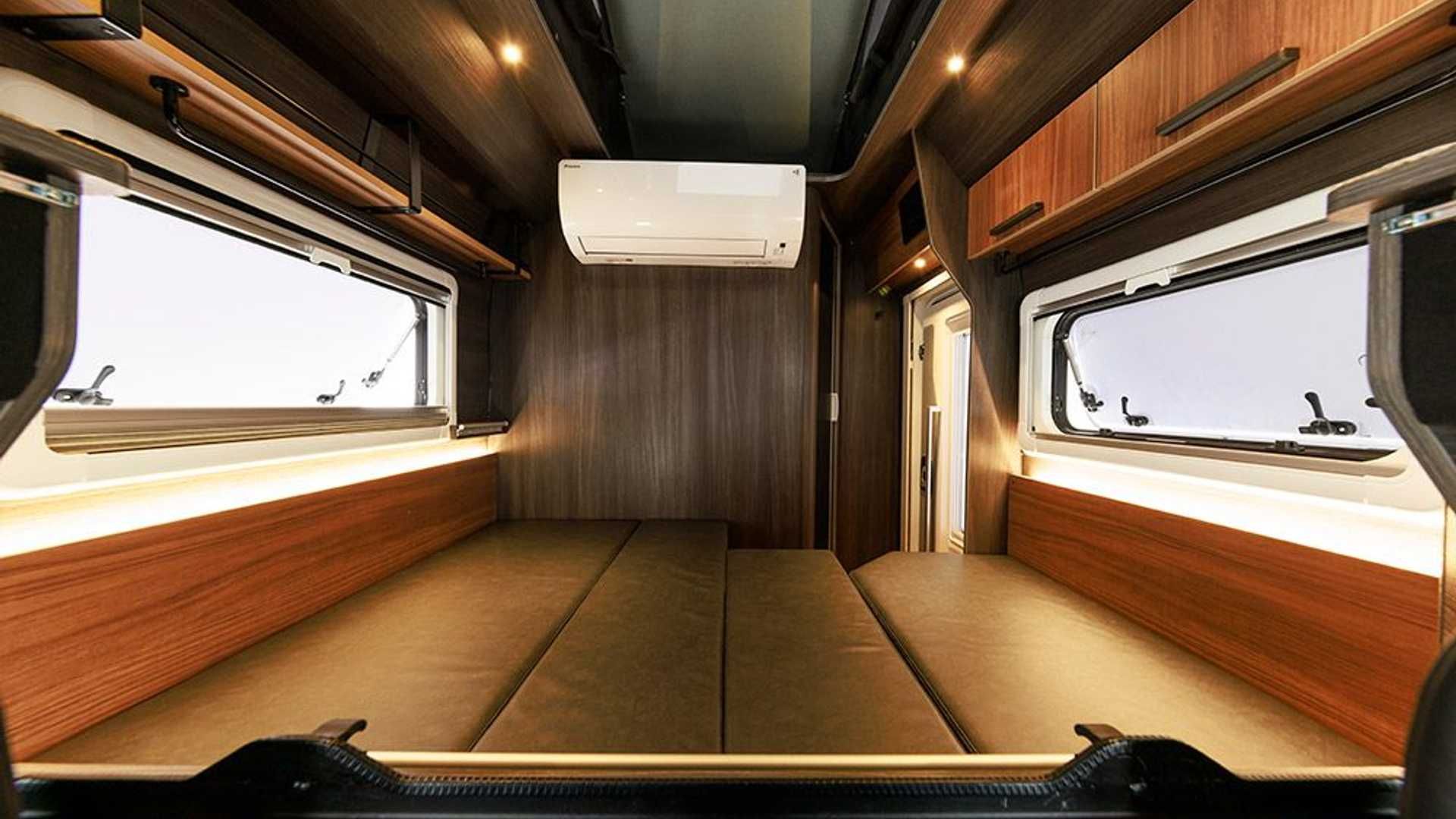 داخل کابین هایلوکس BR-75 شاهد استفاده از چوب در دیوارهها و کابینتها هستیم. برای ایجاد فضای بیشتر یک سقف بازشو با پنجرههای بزرگ وجود دارد که باعث ورود نور به کابین میشوند. نیمکتها و میزتاشونده نیز جزو دیگر جزئیات جذاب هایلوکس کمپر خواهند بود. شرکت یاد شده محصول جدید خود را در دو تریم عرضه میکند. مدل پایه قیمت حدود 84 هزار دلاری دارد و از تریم Z هایلوکس برای شروع کار استفاده کرده است. از جمله آپشن های مدل پایه میتوان به یخچال، بخاری، پانل خورشیدی 200 وات، تلویزیون و... اشاره کرد.