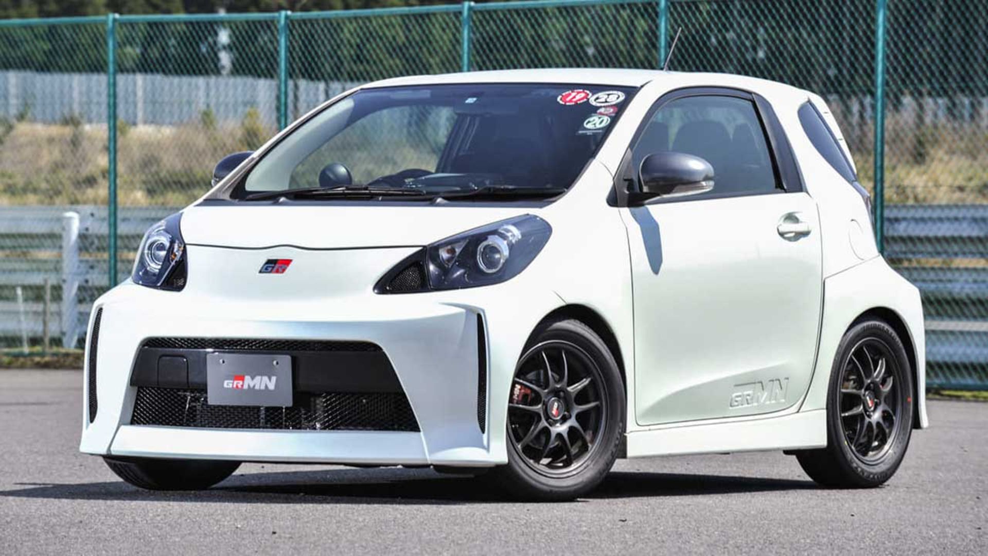 از iQ نه یکی بلکه دو نسخهٔ GRMN ساخته شد. نسخهٔ اول در سال 2009 با پیشرانهٔ 1.3 لیتری جدید 100 اسب بخاری iQ عرضه شد که در کنار یک گیربکس شش سرعتهٔ دستی قرار گرفته بود. سیستم تعلیق سفتتر، ترمزهای دیسکی عقب بجای کاسهای و رینگهای 16 اینچی Rays هم از دیگر ویژگیهای این نسخه بودند. از iQ GRMN تنها 100 دستگاه ساخته شد. چندی بعد، در سال 2012 تویوتا فضایی برای نصب یک سوپرشارژر زیر کاپوت کوچک iQ پیدا کرد و GRMN سوپرشارژ را با 120 اسب بخار قدرت به بازار فرستاد. تصور کنید خودرویی بهاندازهٔ جعبه کفش با چنین قدرتی چه شتابی داشته است!