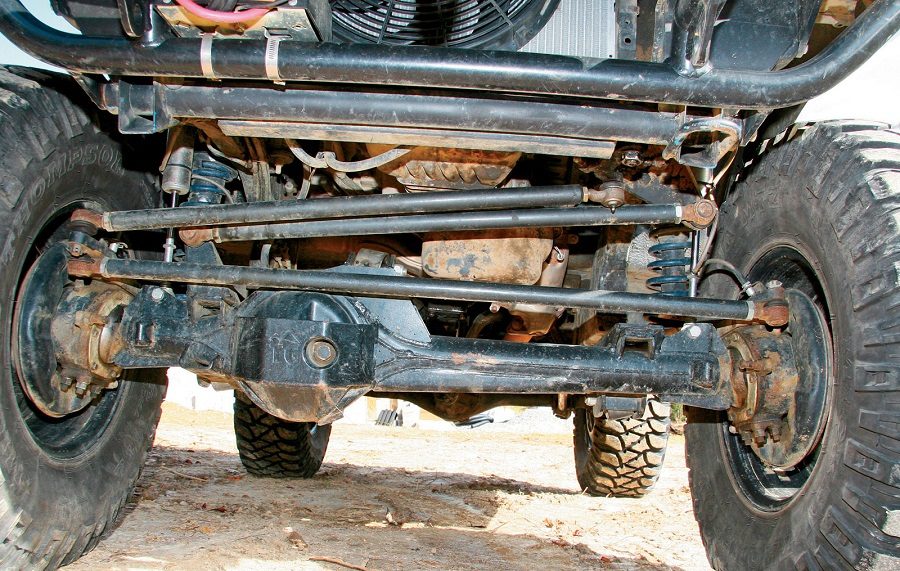 اگر اکسل عقب باعث اتصال چرخهای عقب به یکدیگر شود سیستم تعلیق معمولاً بسیار ساده و از نوع فنر تخت یا پیچشی خواهد بود. در طراحی اولیه فنرهای تخت مستقیماً به اکسل متصل میشوند. در این نوع طراحی انتهای فنرهای تخت به فریم وصل خواهد شد. خودروسازان آمریکایی مدتهای زیادی این نوع طراحی را به خاطر سادگی ترجیح میداند. همین طراحی ساده را میتوان با استفاده از فنرهای پیچشی نیز پیاده کرد. در این حالت فنر و جذبکننده شوک میتواند به عنوان یک واحد مشترک یا جداگانه استفاده شود. درصورتیکه دامپر و فنر از یکدیگر جدا باشند ابعاد فنرها بسیار کوچکتر خواهد بود و بنابراین در استفاده از فضا صرفهجویی خواهد شد.