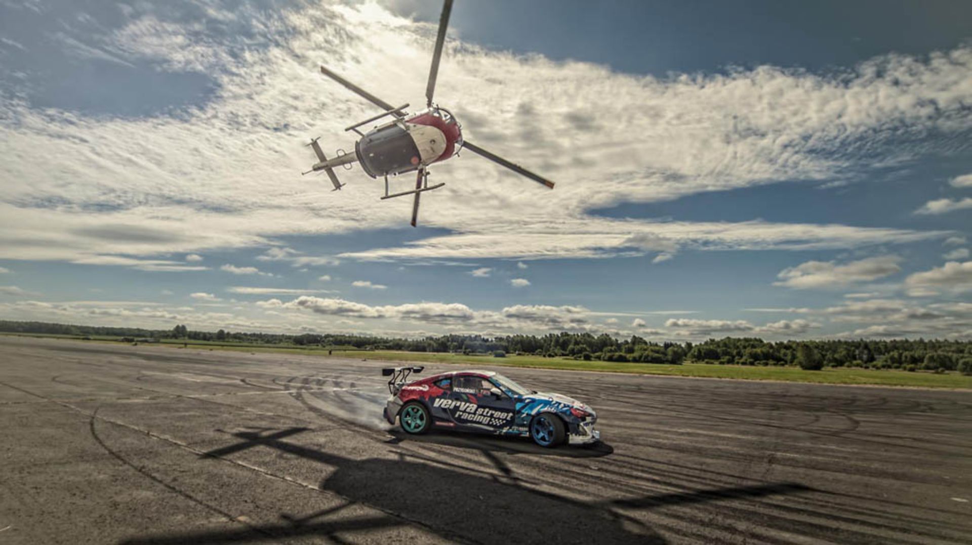 دریفت شگفتانگیز ماشین و هلیکوپتر