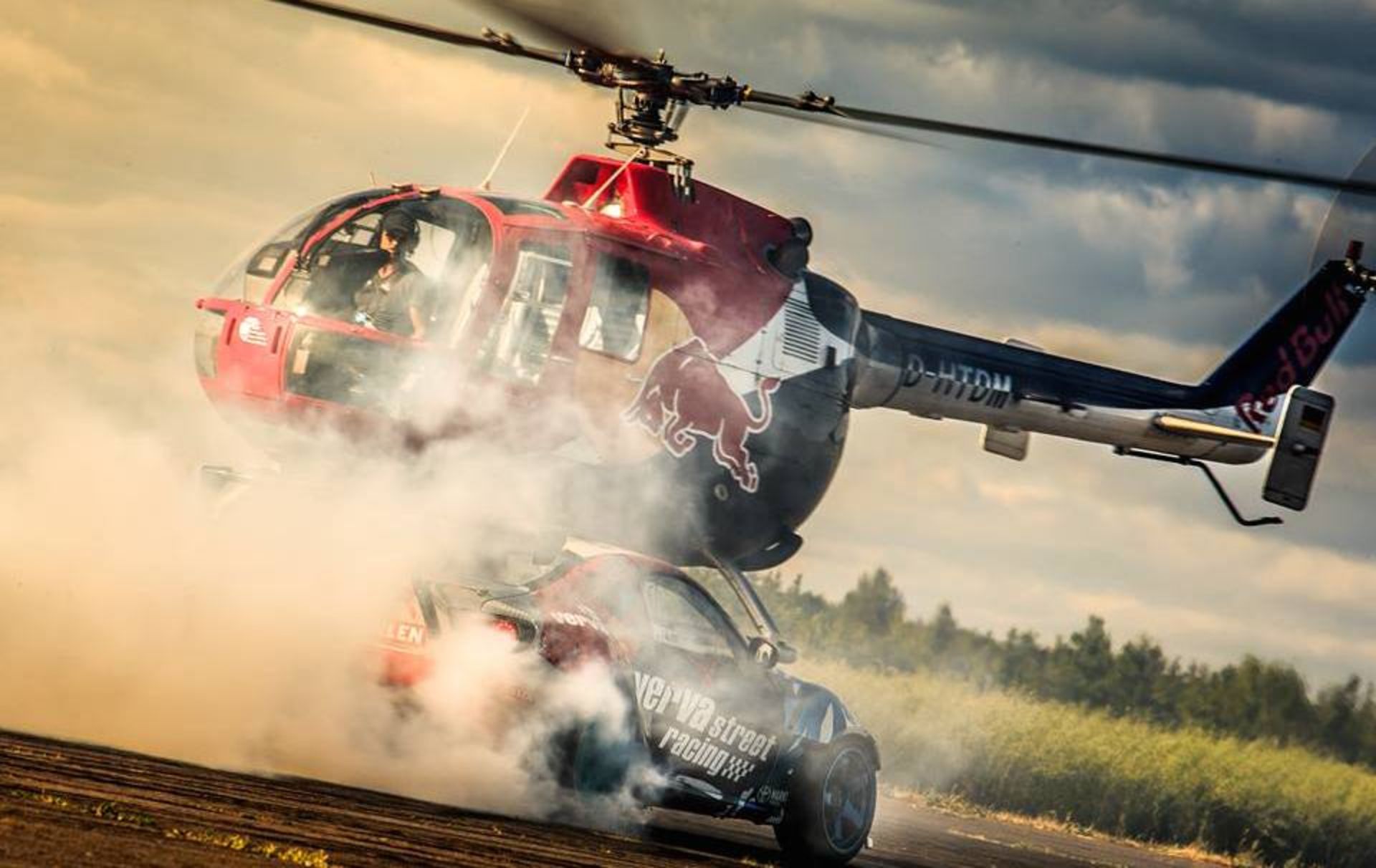 مواد اولیه آخرین شیرینکاری فلیکس شامل هلیکوپتری با کنترل خودش و خودروی دریفت تویوتا جی تی ۸۶ با ۱٬۰۰۰ اسب بخار قدرت است که راننده لهستانی، Jakub Przygoński، را پشت فرمان خود دارد. تعجبی نیست که شخص بامگارتنر عاشق پرواز با هلیکوپترهاست و به همین دلیل تعقیب جی تی ۸۶ را به گردن گرفت. مرکب خلبان هم Bolkov BO105 است، هلیکوپتری مخصوص حرکات آکروباتیک.