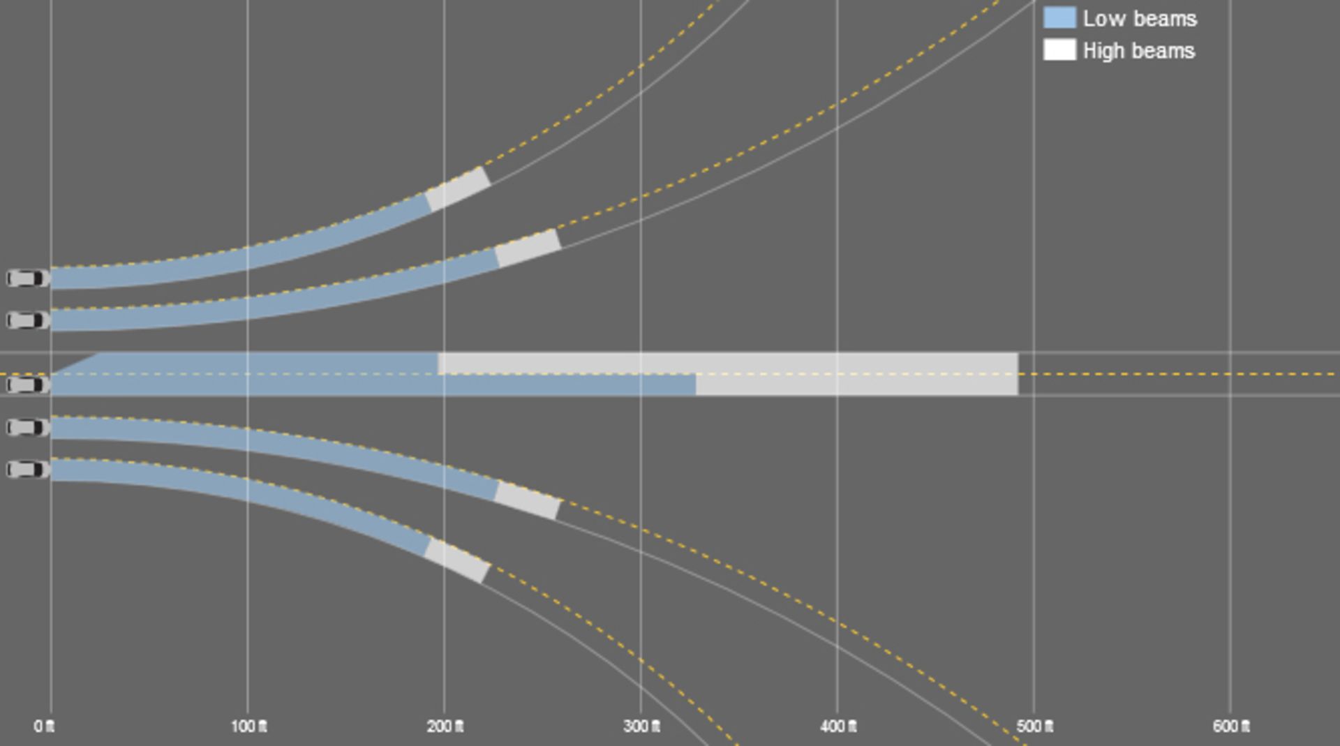 استانداردهای دولتی فعلی به خودروسازان این اجازه را می‌دهد که تفاوت‌های بزرگی در تابش موردنیاز چراغ‌ها برای شرایط مختلف جاده‌ای داشته باشند. چراغ‌های بهینه‌شده پتانسیل کاهش تلفات در جاده‌ها را دارا هستند چراکه بسیاری از تصادفات در تاریکی و یا هنگام غروب آفتاب رخ می‌دهند. علاوه بر این، بااینکه پیشرفت‌هایی در تکنولوژی چراغ‌ها صورت گرفته، اما طبق گفته‌ی موسسه‌ی ایمنی راه‌ها عملکردی خوب دیده نمی‌شود. با توجه به این مسئله، این موسسه سیستم رتبه‌بندی چراغ جدیدی را تهیه‌کرده که در آن تکنولوژی یک چراغ به دیگری ترجیح داده نمی‌شود اما به‌جای آن سیستم‌هایی را تشویق می‌کند که تابشی زیاد بدون نوری خیره‌کننده برای راننده‌های طرف مقابل ارائه می‌دهند.