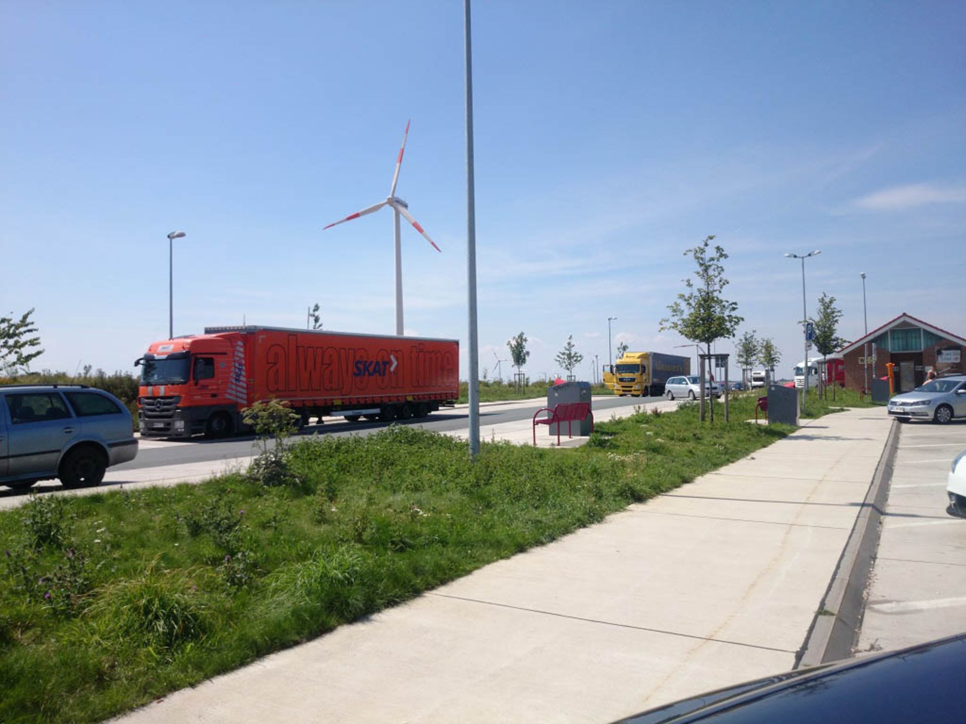 اولین توقف ما در آلمان برای صرف نهار در یک توقفگاه بود. ساعت حدوداً 3 بعد از ظهر بود و ما خروجی شهرهای دورتموند و اسن را پشت سر گذاشته بودیم. در آلمان در کنار اتوبانها عموماً دو نوع توقفگاه یافت میشد. نوع اول که در فواصلی معین و حدوداً هر 50 کیلومتر قرار داشتند، شباهتی به مراکز خدمات رفاهی مدرنی که این روزها در برخی از جادههای کشورمان دیده میشود داشتند. یعنی اینکه شامل یک پارکینگ وسیع، جایگاه سوخت، یک یا چند رستوران، یک هایپرمارکت و در بعضی موارد شامل چیزهای دیگری مانند زمین بازی کودکان و ... میشدند. در این نوع توقفگاهها، معمولاً سرویس بهداشتی در داخل ساختمان قرار داشت و قبل از ورود به آن، باید بهایی در حدود 75 سنت (3 هزار تومان) را به دستگاه پرداخت کرده و رسید دریافت شود. اگر این رسیدها را به فروشگاه یا رستوران ارائه کنید، میتوانید معادل آن مبلغ را از آنجا خرید کنید. البته با 75 سنت معمولاً چیز چندان دندانگیری به دست نمیآمد و چیزهایی مانند یک شکلات یا یک بسته پودر نسکافه آماده به همراه یک لیوان آب جوش را میتوانستید با این مبلغ خریداری کنید.