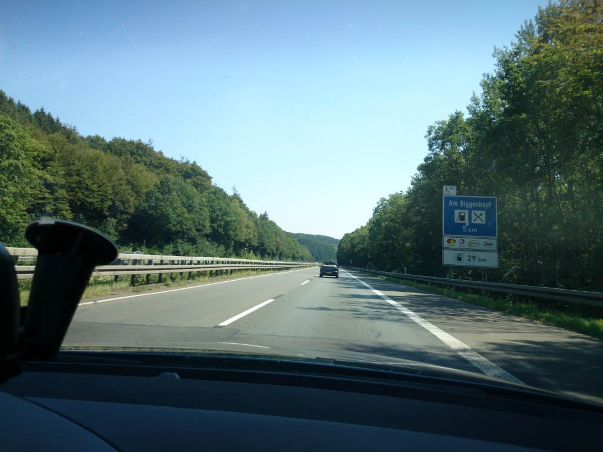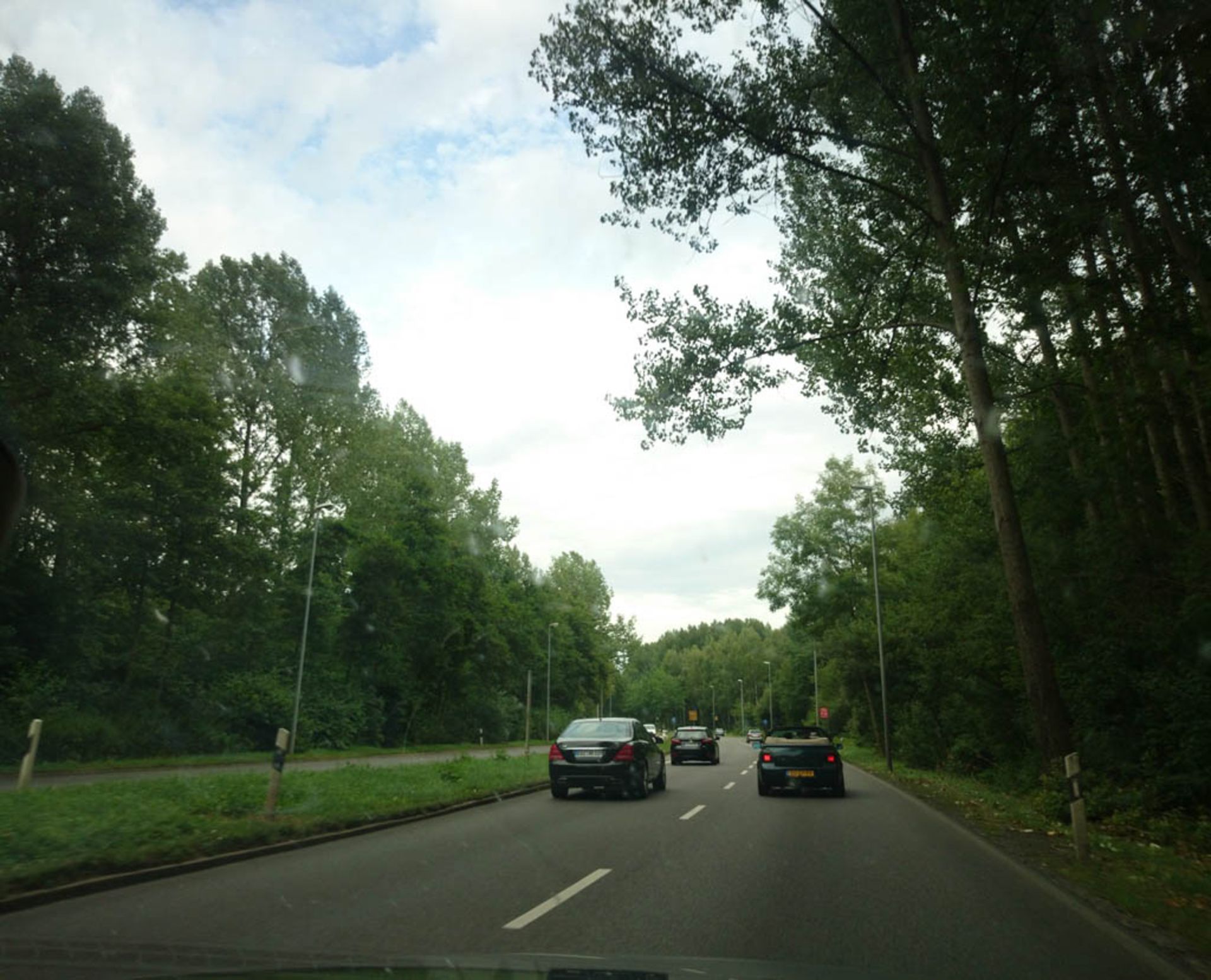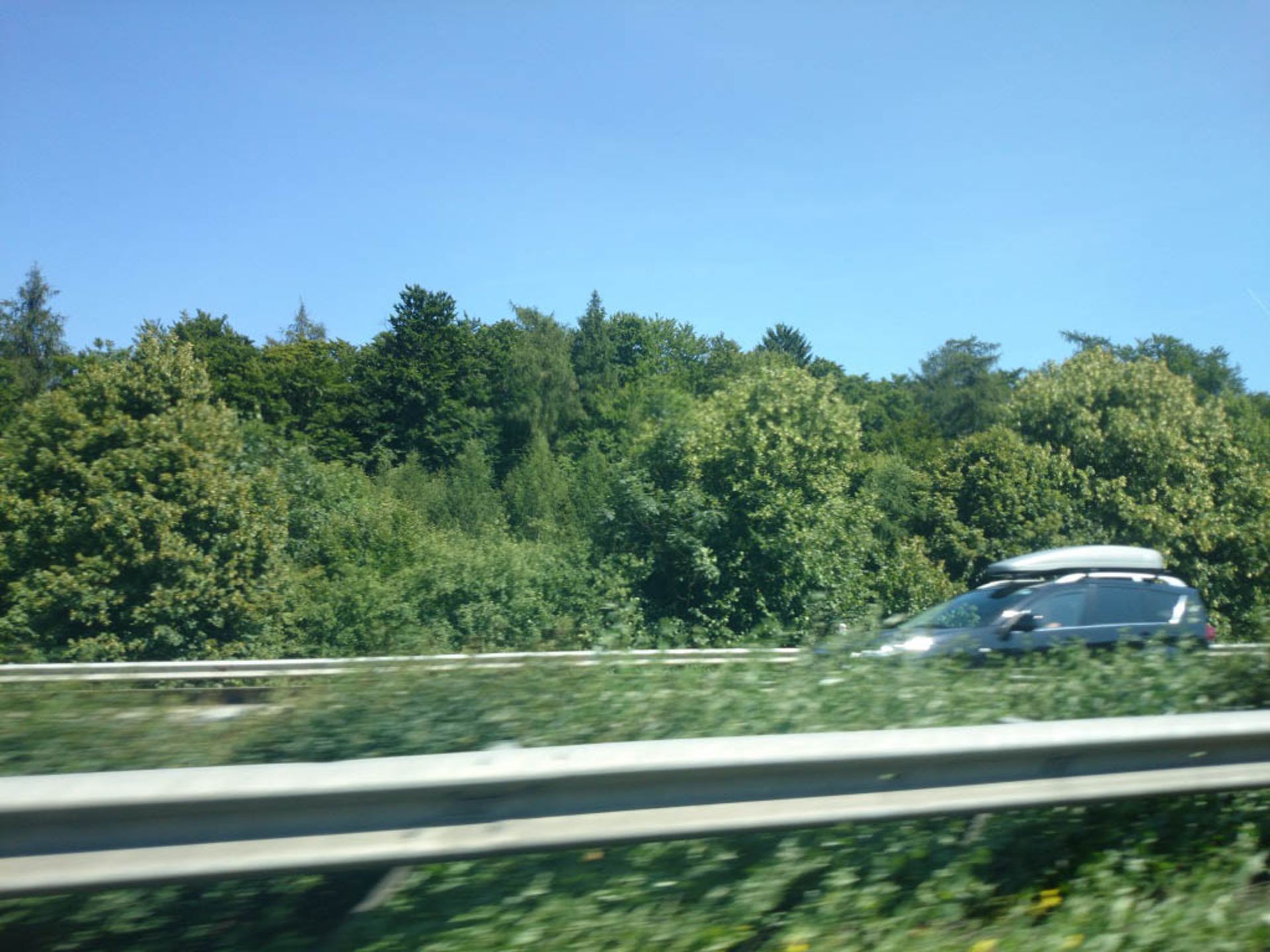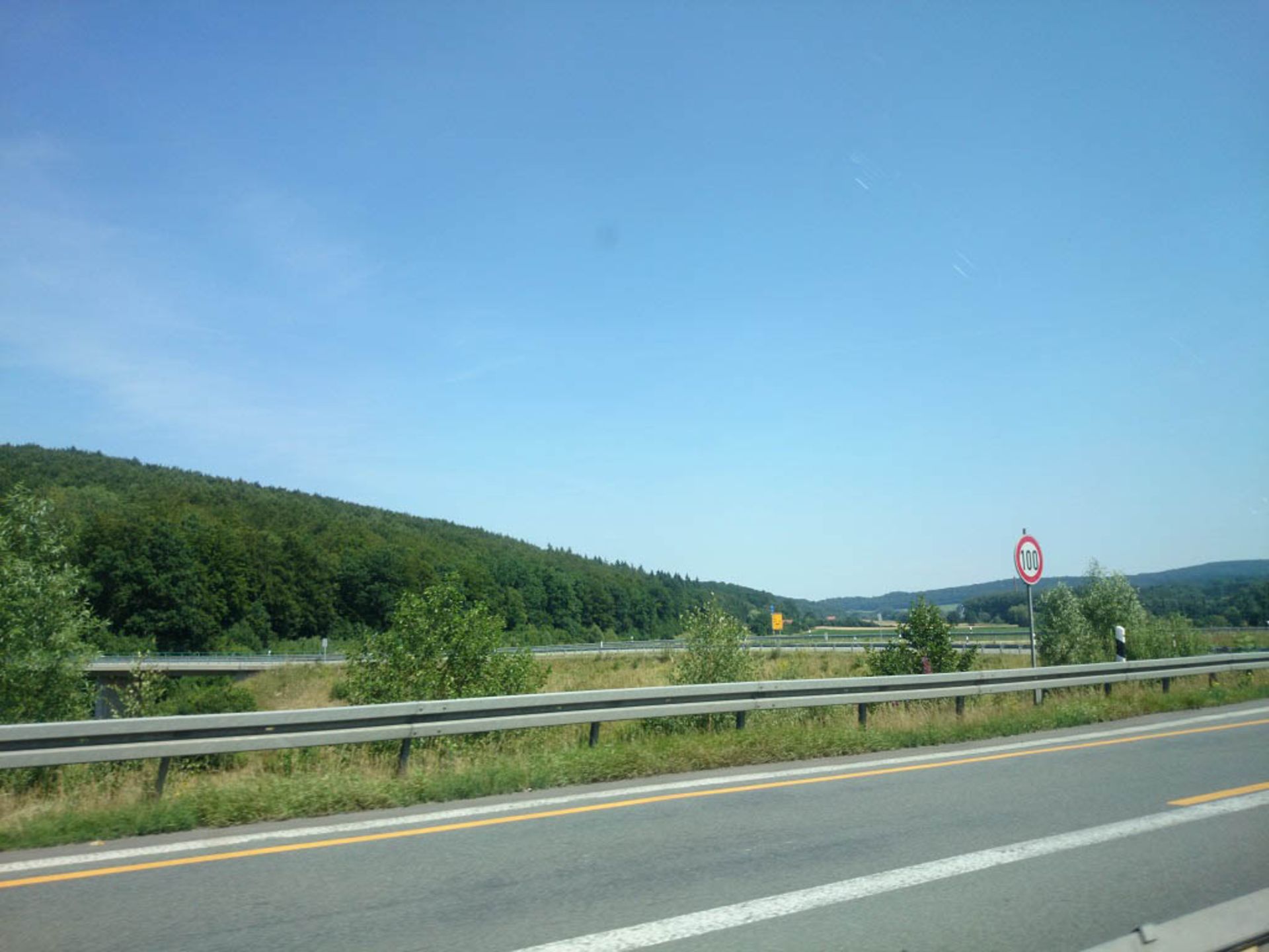 گلف سقف باز سبز رنگ مرتضی از جادههای فرعی گذشت و وارد بزرگراه شد. ما هم به تبعیت از او، وارد بزرگراه شدیم و سرعت خود را به حداکثر سرعت مجاز، که 120 کیلومتر بر ساعت بود رساندیم. با توجه به نزدیکی ما به مرز آلمان، هر لحظه انتظار داشتم که به مرز برسیم. اما پس از گذشت چندین دقیقه، خبری از مرز نشد. در همین فاصله، مرتضی که چندان اهل رعایت کردن سرعت مجاز نبود، کمی از ما فاصله گرفته بود و چند صد متر از ما دور شده بود. پس با مرتضی تماس گرفتیم و از او پرسیدیم که بالاخره کی به مرز میرسیم و وارد اتوبانهای بدون محدودیت سرعت میشویم؟ مرتضی با خنده جواب داد که شما کاری به این چیزها نداشته باشید و فقط پشت سر من حرکت کنید. در همین حین، به تابلوهای اتوبان دقت کردم و متوجه نکته جالبی شدم: تابلوها به زبان آلمانی بود! بله ما وارد آلمان شده بودیم، بدون اینکه خودمان خبردار شویم!
