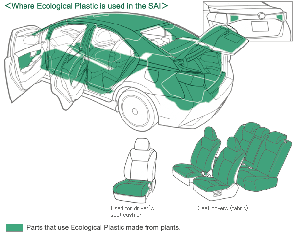 تویوتا نیز با استفاده از بیوپلاستیک هایی که بر پایهی نیشکر ساخته میشوند در حفظ محیطزیست نقش ایفا میکند. این مواد در بخشهای مختلف خودرو از جمله صندلیها و رادیاتور بکار میروند اما بیش از آنکه بر پایه پلاستیکهای سنتی ساخته شده باشند از نیشکر در ساخت آنها بهره برده شده است. در حقیقت این خودروساز ژاپنی پیشروی هنوز استفاده از بیوپلاستیک ها در خودروها است.