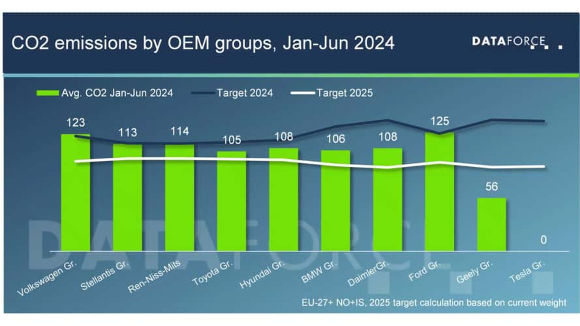هدف کنونی اتحادیه اروپا 115.1 گرم بر کیلومتر است که تا سال 2025 به 93.6 گرم بر کیلومتر کاهش پیدا خواهد کرد و کار خودروسازان را از همیشه سختتر خواهد کرد. تحقیقات شرکت دادهپردازی «دیتافورس» نشان میدهد که خودروسازانی که به بازار اروپا تکیه کردهاند، آیندهای دشوار خواهند داشت. تاکنون تنها دو برند تسلا و جیلی از مرز انتشار کربن 2025 عبور نکردهاند.