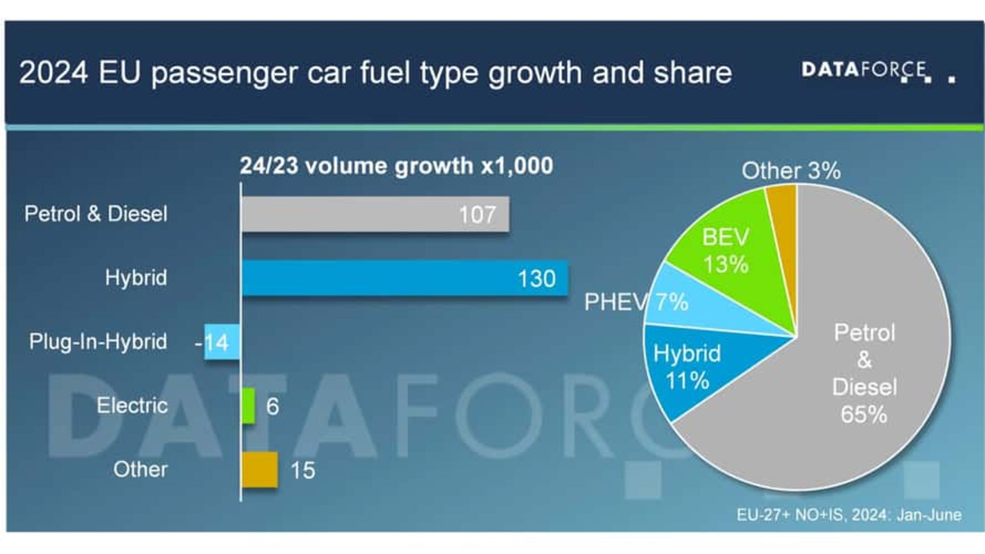 این دسته سیاستهای حکومتی، تولیدکنندگان را بر سر دو راهی میان محصولات درونسوز و برقی قرار داده است. هر چند میل خودروسازان به محصولات نوآورانه برقی بیشتر است اما دیگر خبری از یارانههای هنگفت تولید که در گذشته اعطا میشد نیست. دادهها نشان میدهند که محصولات برقی سهمی 12.5 درصدی از بازار کنونی خودرو در این قاره دارند. جالب است بدانید که سهم بازار خودروهای پلاگین هیبریدی هم در سال 2023 با کاهشی 0.5 درصدی مواجه شده و به 6.9 درصد رسیده است؛ درحالیکه خودروهای هیبریدی عادی با رشد 4.2 درصدی به سهم 29.2 درصدی رسیدهاند.