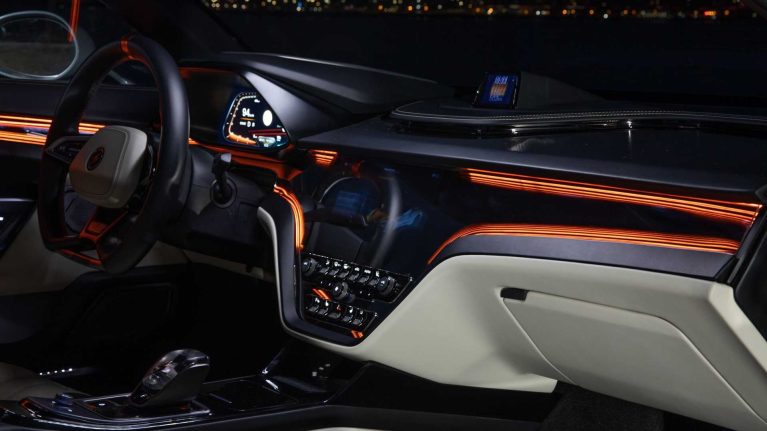 تصاویر موجود از کابین، طراحی جشمنواز با مواد ارزشمند و باکیفیت را به وضوح نشان میدهد. ترکیب چرم سفید با ادوات سیاه و جزئیات نارنجی، حس اسپرت وایان را تقویت میکند. شکل کلی داشبورد و صندلیها، چندان خلاقانه نیست و همراه با کلیدهای پرتعداد زیر نمایشگر اصلی، مشابه سوپراسپرتهای پرفروش بازار جهانی است.