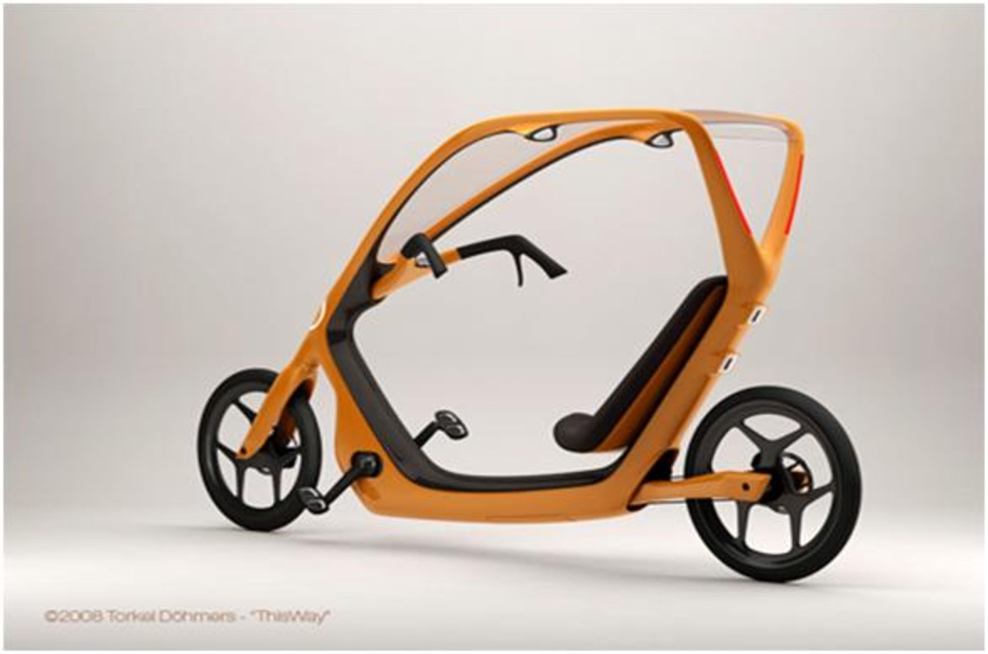 این دوچرخه هم قرار است در برابر باران شما را محافظت کند. سقف شفاف است و قاب بدنه سوار را در برابر ضربات محافظت می کند.