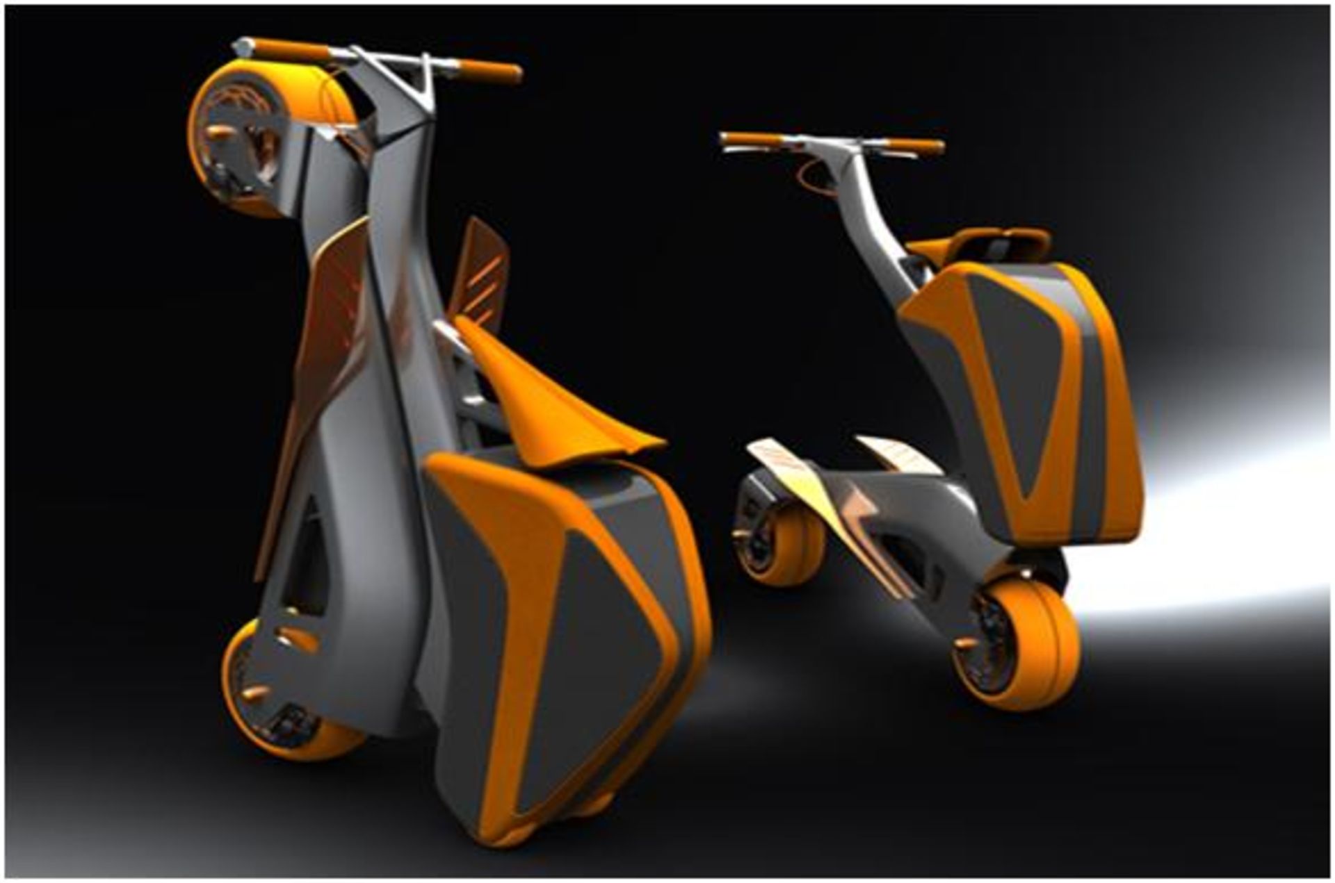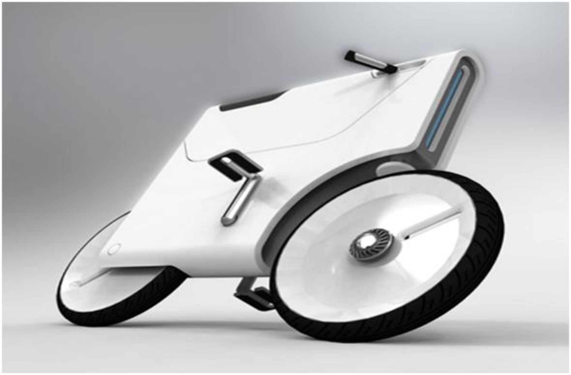 این دوچرخه کانسپت هم قابلیت تا شدن دارد و بعلاوه فضایی برای بارهای کوچک زیر تنه درنظر گرفته شده است.