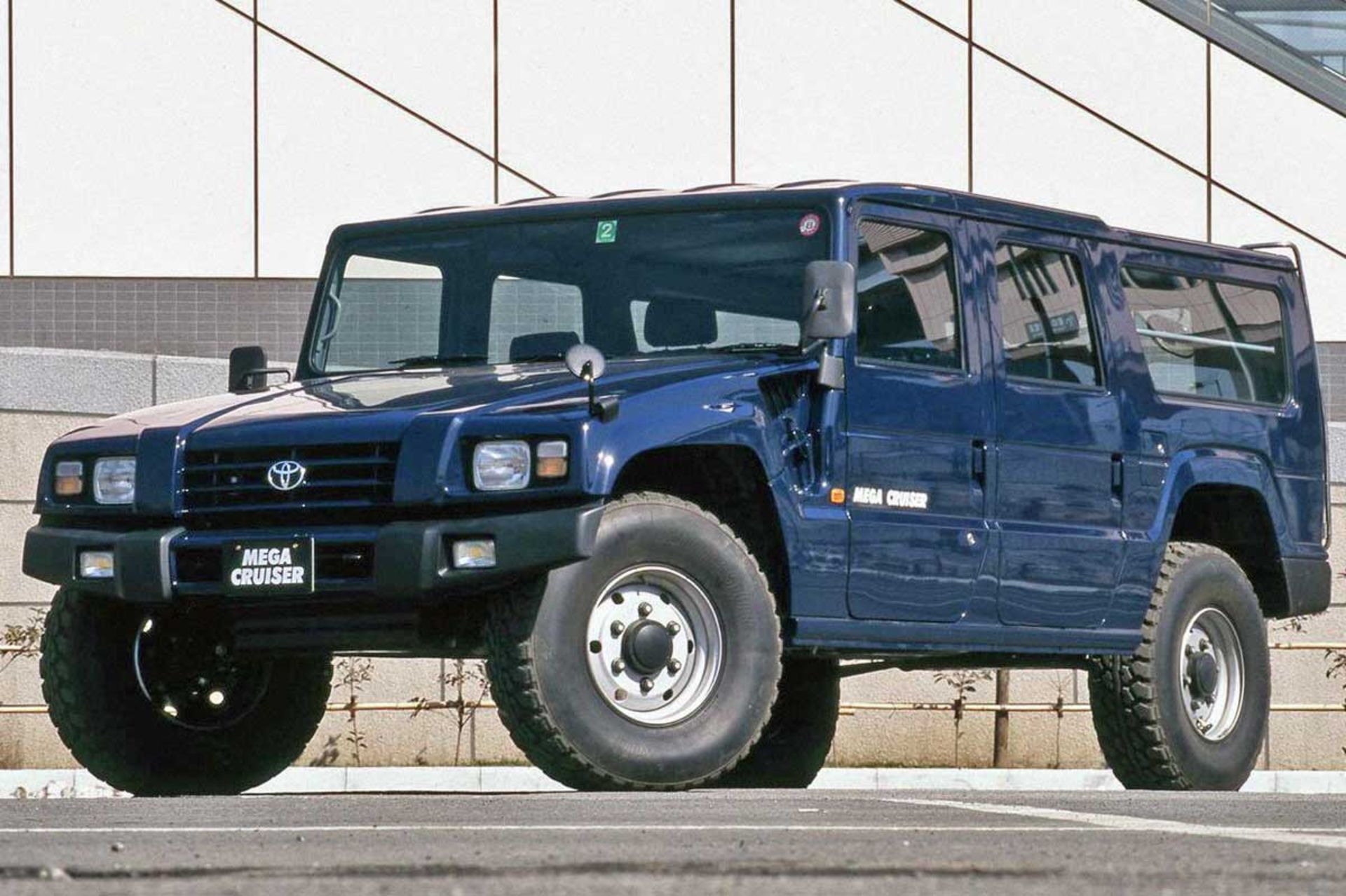 آخرین خودرو در این فهرست شاید چندان شناختهشده نباشد اما یکی از جذابترین و نادرترین آفرودرهای تاریخ است. مگا کروزر درواقع نسخهٔ تویوتا از هامر محسوب میشود. مگا کروزر برای نیروهای دفاع ژاپن طراحی شد و مانند هامر، بهعنوان یک ماشین آفرود بینظیر به مشتریان غیرنظامی عرضه شد اما تنها 133 دستگاه به دست خریداران رسید که آن را به یکی از کمیابترین و توانمندترین مدلهای تویوتا تبدیل کرد. این خودرو با لاستیکهای 37 اینچی، اگرچه کند و قدیمی است ولی میتواند شما را به هر مقصدی برساند.