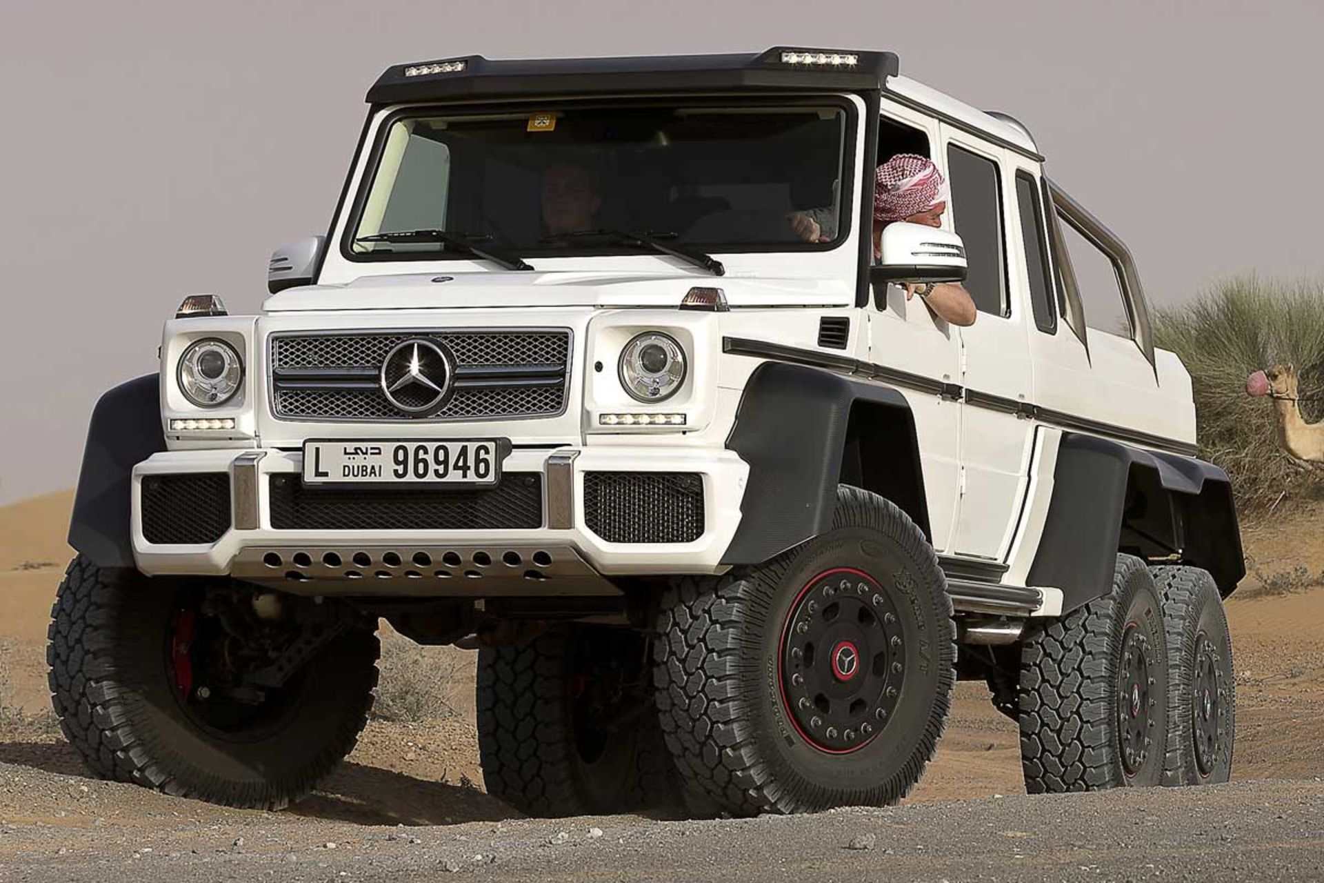حالا به قلمرو لاستیکهای بزرگتر میرسیم و اولین خودرو با لاستیکهای 37 اینچی، یکی از دیوانهوارترین خودروهای تولیدی تاریخ یعنی مرسدس بنز G63 AMG 6x6 است. هرچند ایده پیکاپ ششچرخ چندان تازگی ندارد ولی G63 اولین خودرویی بود که بهصورت کارخانهای با شش چرخ تولید و با قیمت نیم میلیون دلار عرضه شد. در ازای این مبلغ، یک G63 با طول تقریبی 5.8 متر، اکسلهای پورتال، پنج دیفرانسیل قفلشونده و سه جفت لاستیک آفرود 37 اینچی دریافت میکردید. قدرت 544 اسب بخاری G63 در مقایسه با خودروهای امروزی شاید کم به نظر برسد، اما برای شتاب صفرتاصد زیر 8 ثانیه و پرش در شنزارها کافی بود.