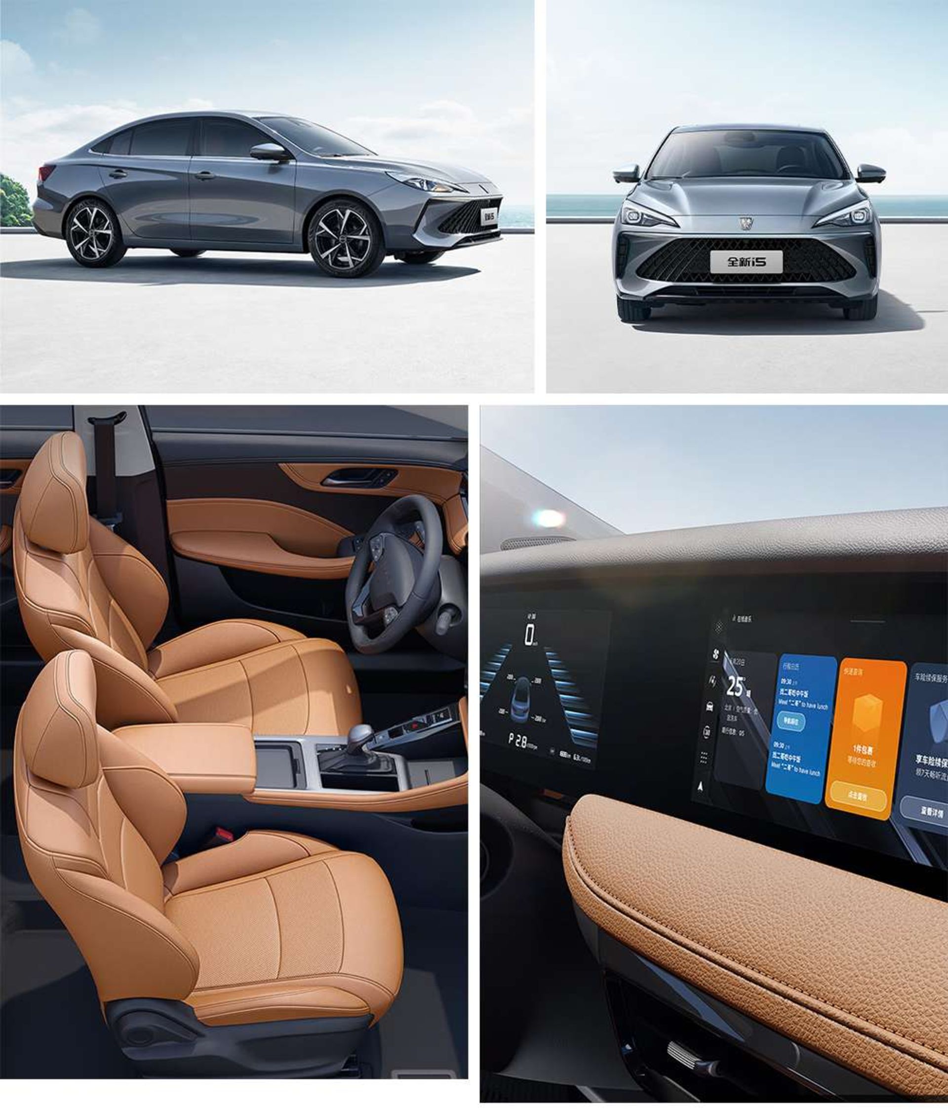 نمای اصلی، یک خودروی چینی با چراغ‌های بزرگ و کشیده را تداعی می‌کند که از سال‌ها پیش در مدل‌های بی‌شماری دیده‌ایم. حفره‌ی بزرگ جلوپنجره به پایین سپر منتقل شده و هزینه تولید را کاهش داده است. همچنین خط مربوط به لبه‌ی کاپوت در فضای بین چراغ‌های اصلی، توی ذوق می‌زند. این موارد، تفاوت رووی i5 و ام‌جی 5 را نشان می‌دهند.