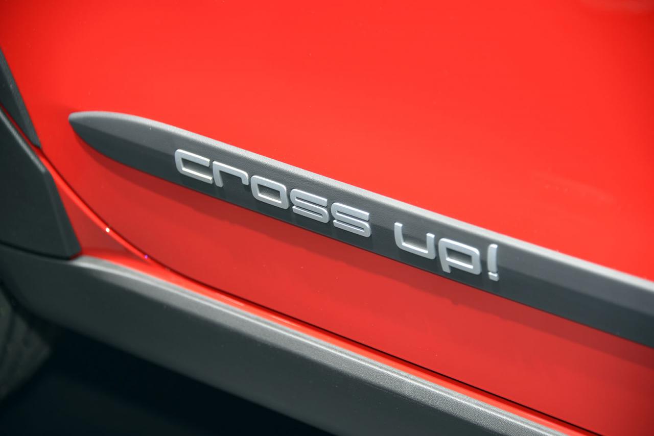 در زیر کاپوت کوچک این خودرو یک پیشرانه 74 اسبی سه سیلندر جای گرفته که به کمک گیربکس پنج سرعته دستی قدرت تولیدی اش را مانند مدل های استاندارد آپ! به چرخ های جلویی منتقل می کند. وجه تمایز کراس آپ! باسایر مدل ها وجود سپرهای جلو و عقبی است که یک روکش نقره ای رنگ به آن افزوده شده، بزرگترشدن ورودی هوای جلو، سقف نقره ای رنگ و نهایتا استفاده از زه های پلاستیکی است که در روی گلگیرها و رکاب های جانبی بکار رفته اند.