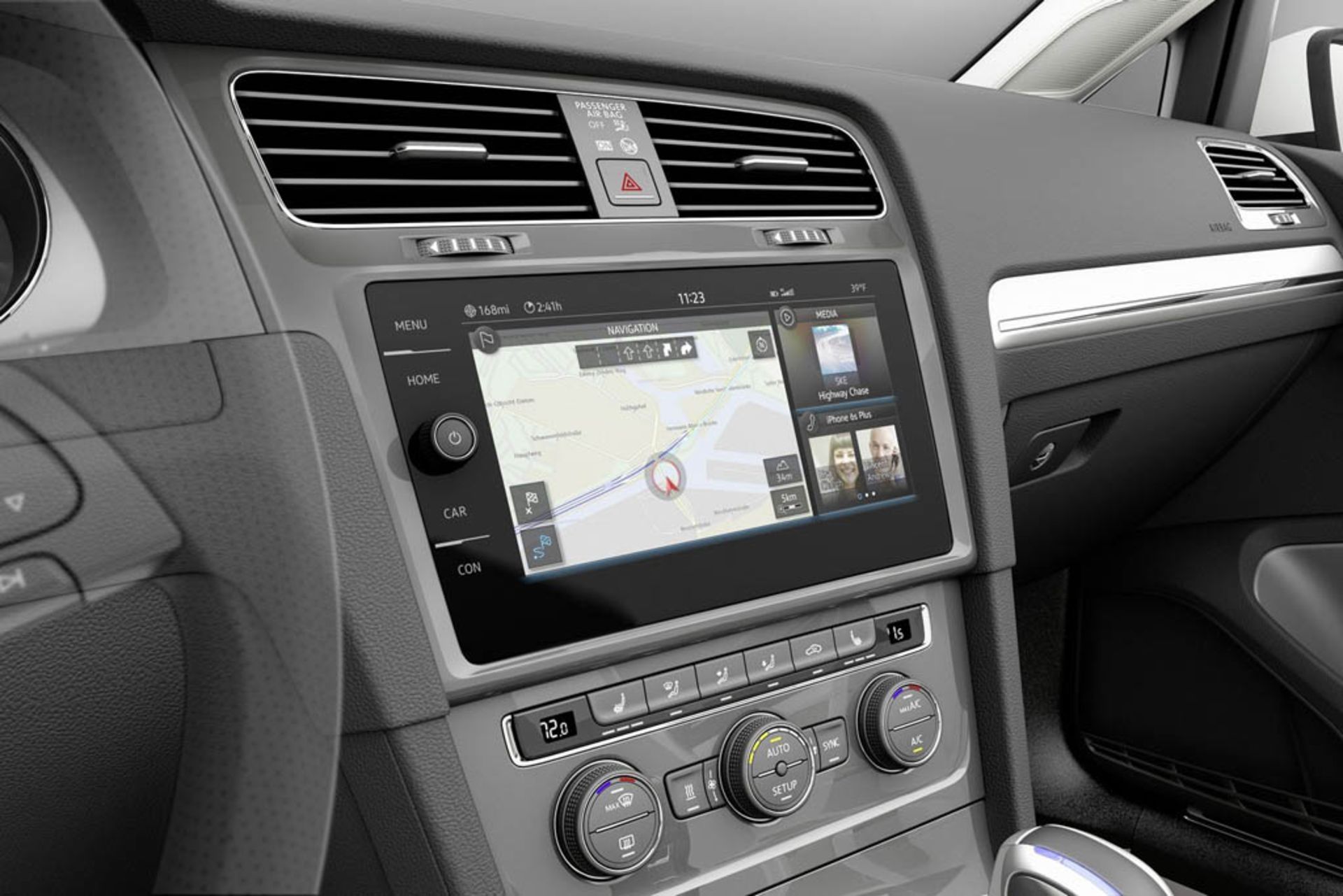 تکنولوژی ای-گلف تاچ به همراه آخرین سیستم اطلاعات و سرگرمی فولکسواگن یعنی MIB infotainment و با نمایشگری 9.2 اینچی با رزولوشن 1280 در 640 پیکسل ارائه میشود. این صفحهنمایش قابل تنظیم است و راننده میتواند صفحهنمایش را مطابق با عملکرد و دسترسی سریعتر به کارهای معمول تنظیم کند. همانطور که انتظار داشتیم پشتیبانی از درگاههای ارتباطی آندروید اتو، اپل کارپلی و میرورلینک در سیستم اطلاعات و سرگرمی باعث شده که همگامسازی خودرو با گوشیهای هوشمند بهسادگی انجام شود.