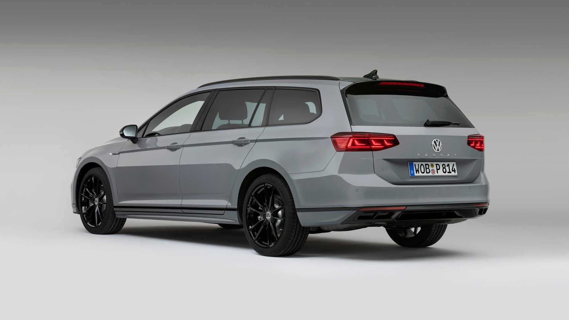 تکمیل کنندهی این طرح مشکی پوشش آینههای جانبی، فریم شیشههای جانبی، اسپویلر عقب نصب شده روی سقف و دیفیوزر عقب است. رینگهای 19 اینچی نیز طرح مشکی براق را نشان میدهند. چراغهای عقب LED پاسات R-Line به حالت تیره درآمدهاند تا با کلیت خودرو همخوانی داشته باشند. چراغهای جلو نیز دارای ماتریکس LED مدلهای فیس لیفت این خودرو میباشند.