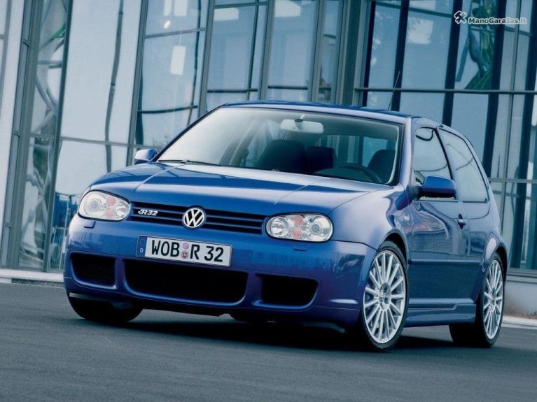 اولین گلف R با کد مدل R32 در سال 2002 رونمایی شد. این خودرو، براساس نسل چهارم (MK4) به تولید رسد و از نظر فنی، اشتراکاتی با آئودی TT داشت. پیشرانهی 3/2 لیتر VR6 با قدرت 241 اسب بخار و گشتاور 320 نیوتنمتر، همراه سیستم دو دیفرانسیل و تجهیزات کنترل کشش، سرعتگیری صفر تا صد کیلومتر برساعت 6/6 ثانیه فراهم میکرد.