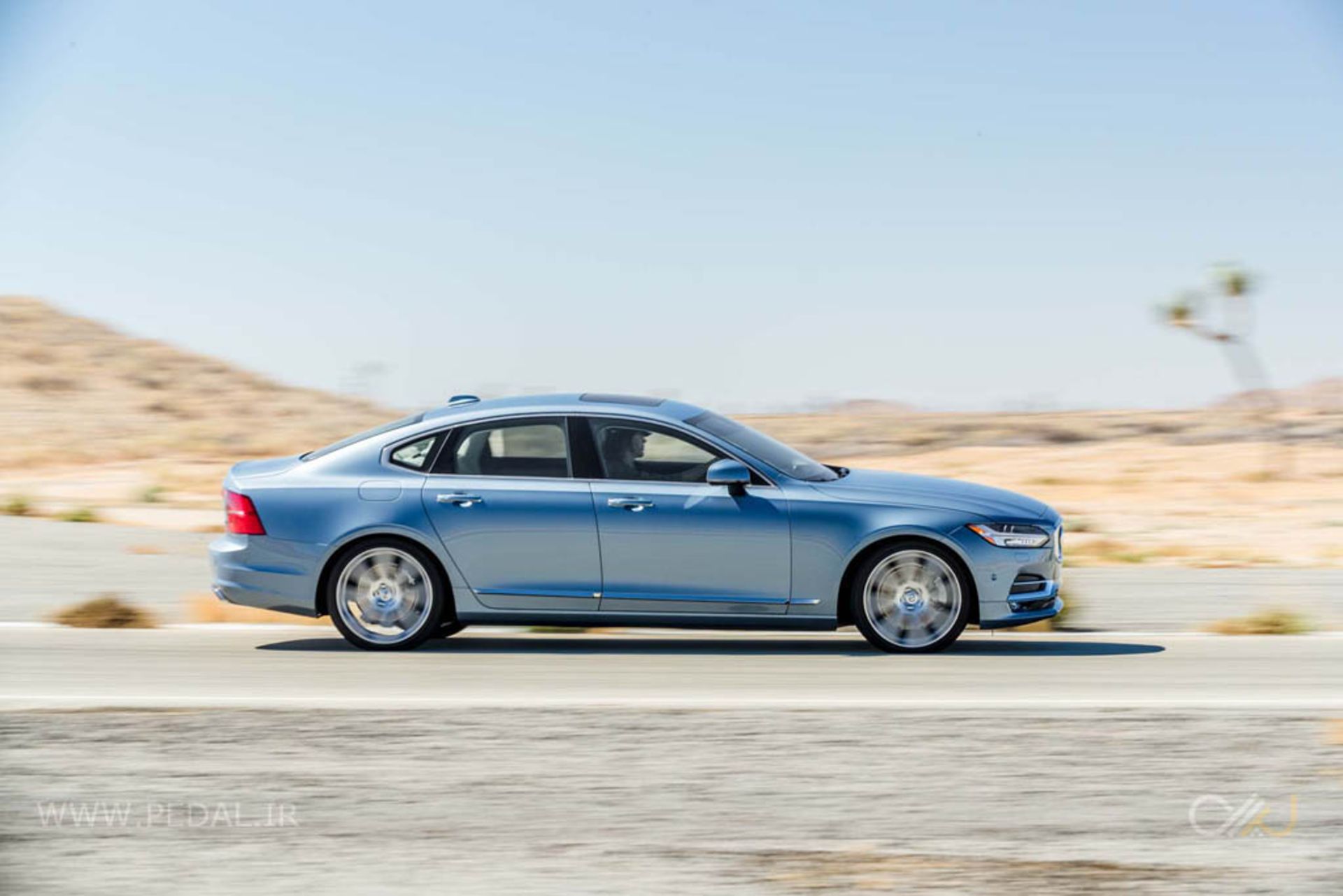از جانب دیگر، ولوو وقت و سرمایه زیادی هم روی متمایز کردن سدان لوکس خود گذاشته و تلاش کرده تا شخصیتی مستقل به آن ببخشد. طراحی ظاهری و داخلی S90 حقیقتاً زیبا، شیک، لوکس و دلچسب می‌نماید؛ البته نمای بخش عقب به‌گونه‌ای است که زود قدیمی خواهد شد و حداقل به یک فیس لیفت مناسب نیاز پیدا خواهد کرد. کریستیَن سیباگ (Christian Seabaugh) از دست‌اندرکاران مجله Automobile، در تجربه رانندگی خود می‌نویسد: در پیست توانستیم با ظرفیت تقریباً پر، به شتاب اولیه (96-0 کیلومتر بر ساعت) 5.6 ثانیه‌ای دست یافته و یک‌چهارم مایل را ظرف 14.1 ثانیه با حداکثر سرعت 159 کیلومتر بر ساعت طی کنیم. در آزمون ترمز گیری (0-96 کیلومتر بر ساعت) بسیار خوب عمل نمود و تنها پس از 32.6 متر ایستاد. سیستم تعلیق، برخلاف بسیاری از نمونه‌های XC90، در جلو از نوع بازوی جناغی دوبل و در عقب فنر تخت متقاطع است (فنرهای بادی را باید با پرداخت 1.200 دلار بیشتر سفارش دهید). بااین‌وجود مشکل خاصی در انجام اِسکیدپاد (Skidpad) حس نمی‌شود؛ یک 8 کامل را توانستیم طی مدت 26.3 ثانیه و با شتاب جانبی بیشینه و متوسط به ترتیب 0.88 و 0.68 جی به ثبت برسانیم.